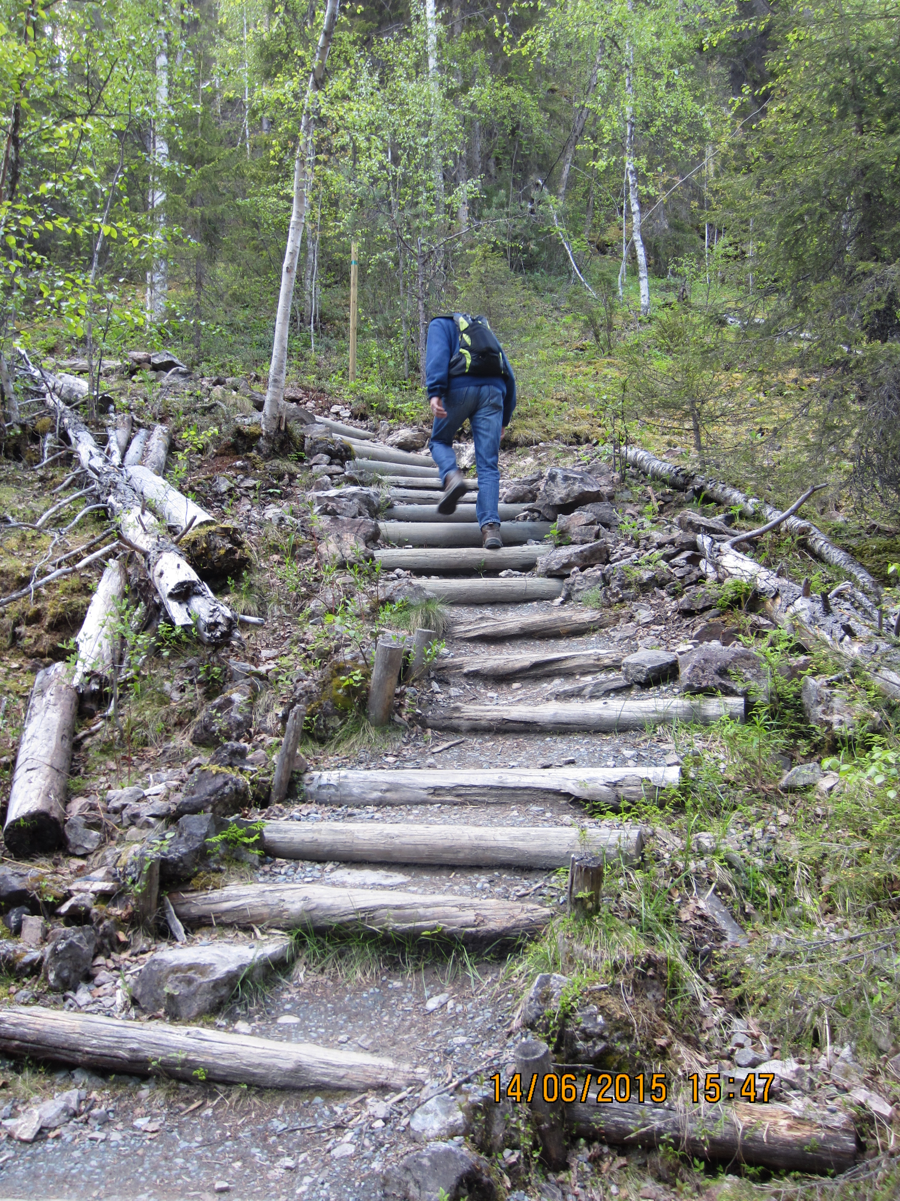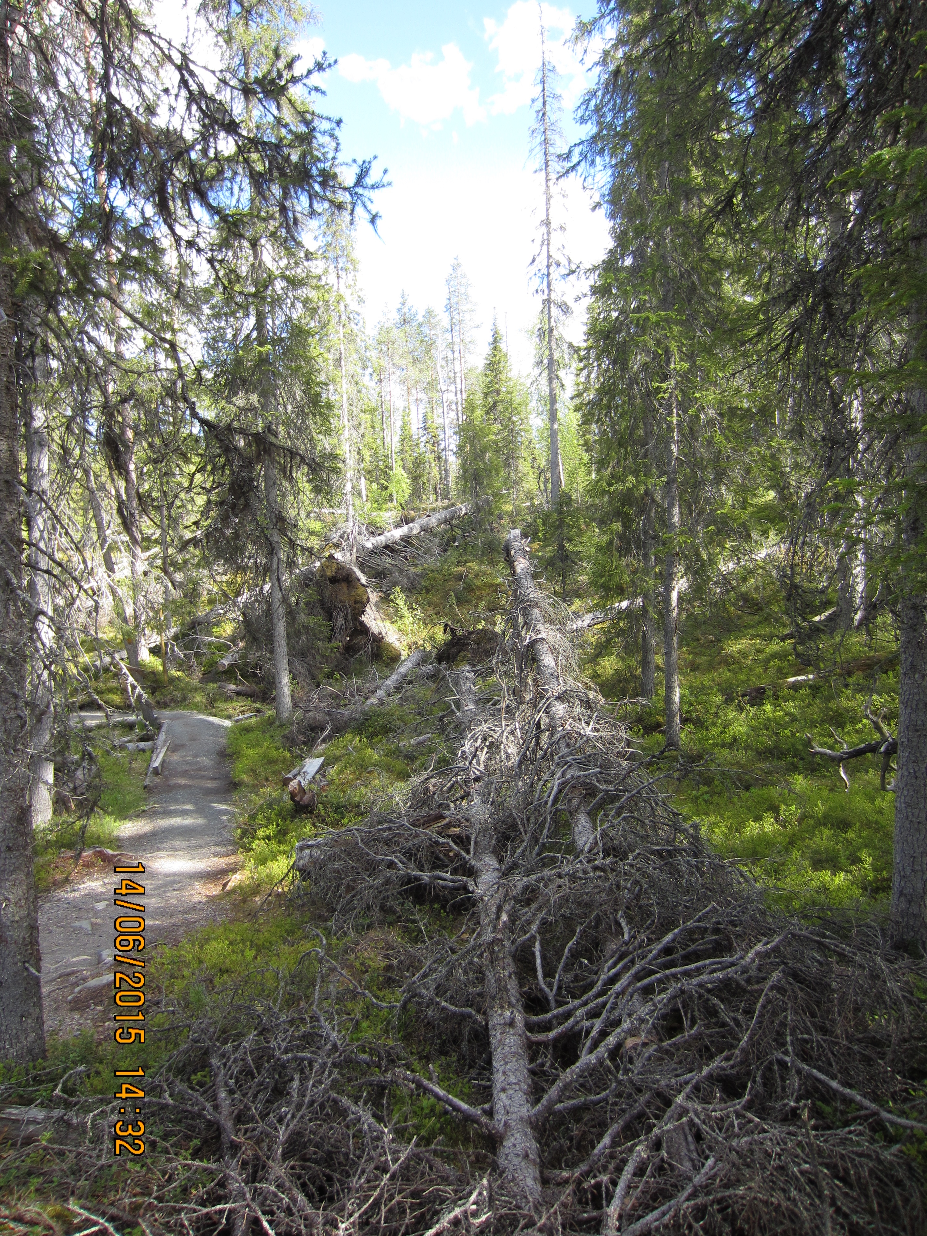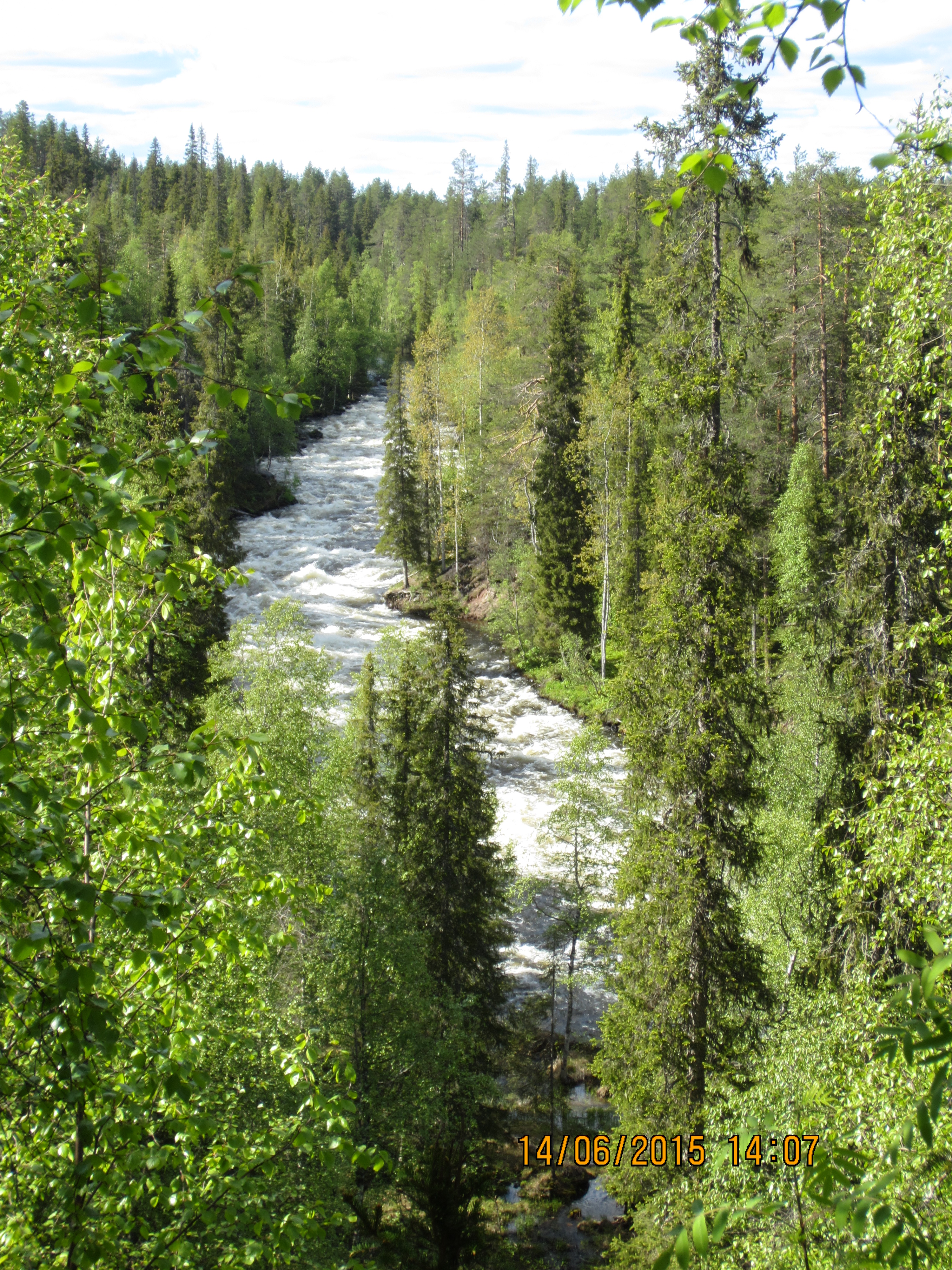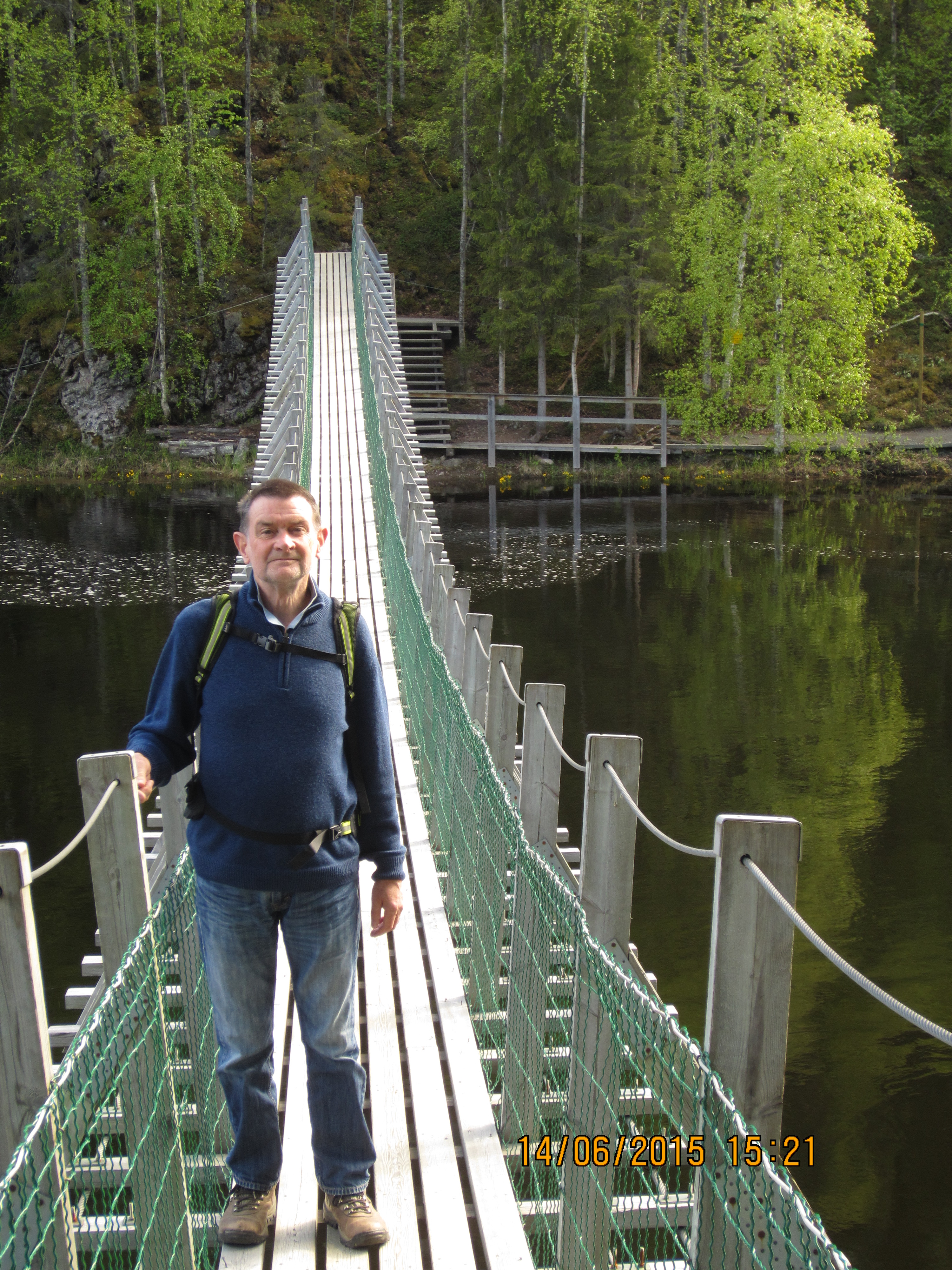 Thence to the Oulanka National Park, specifically Juuma, for a truly memorable hike over 12 km known as the Little Bear Ring, via rope bridges, rapids and gorges. Indiana Jones and Mrs Jones. But no swinging … on ropes of otherwise! Guide book described it as one of the most scenic Finnish walks. Both of us agreed that this is one of, if not THE, most interesting and scenic walks we have ever done. Pix can speak for themselves – sorry there are so many, but it was truly lovely. Had taken only the little Canon instamatic, but still pleased with the quality. Do check out the water reflections – superb.