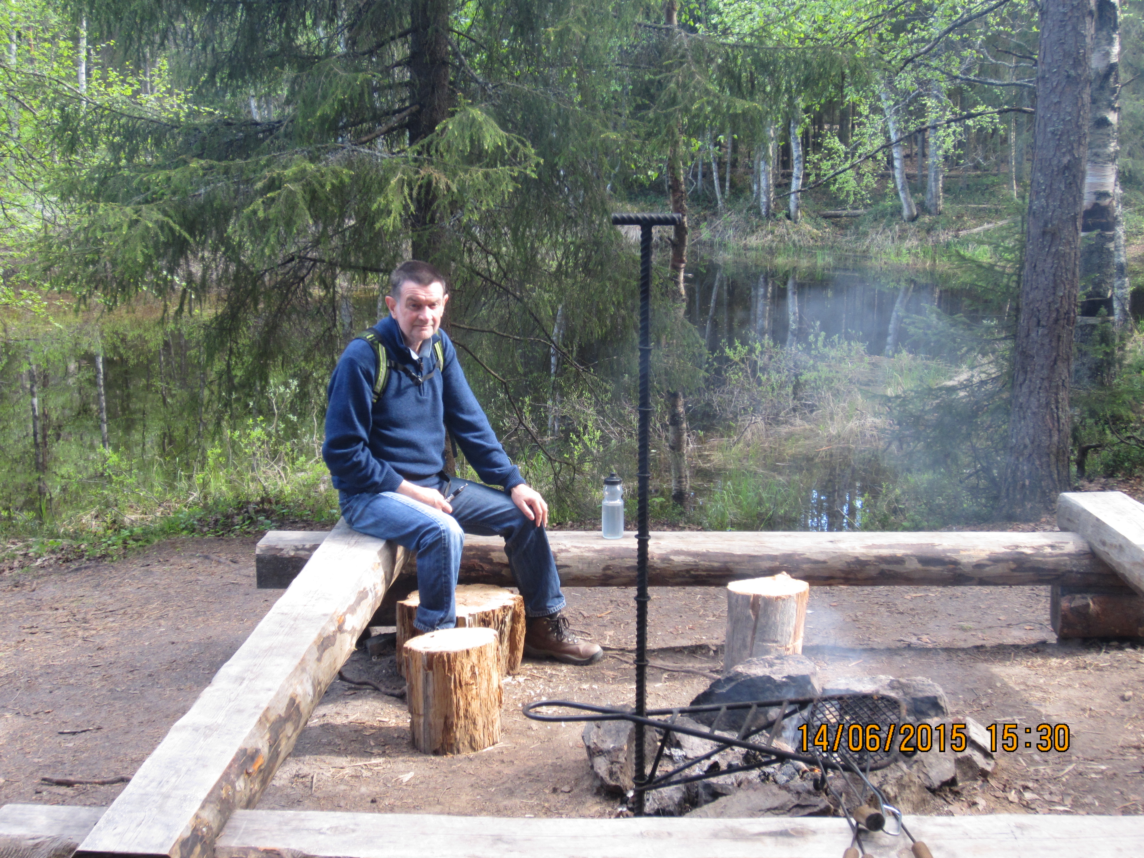 Most of Scandinavia encourages ‘get back to nature’ with well supplied campsites in National Parks. J rekindled one of last night’s fires. I think he hoped the smoke would deter the mossies!