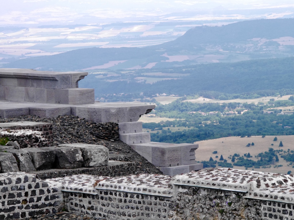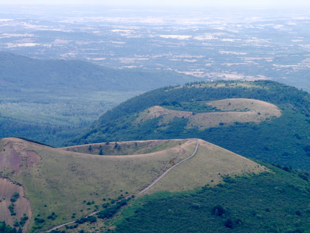 AM after some strange animal shriekings – could be some pigs still celebrating the end of the 30-year war – or asking not to be slaughtered ? To the ritual exercising – between Coheix and Mazaye (impressed by my local knowledge? I read road signs… I still cannot find the towns called “Sortie” and “Rappel” on the map of France – but I also failed with “Ausfart” in Germany – not an Aussie wind? J’s running was less Coheixive – maybe a small muscle twinge ? We motored to le Puy de Domes – parked in the heat and boarded a dinky train up to 1500 metres – sheer drops on one side – J went looking for the emergency braking system….. A collection of dome shaped volcanoes which are hugely impressive; some have a crater and some water. Paraglider trips for 80 Euro – we passed on that one – back on the train down the mountain and lunch in the van – amazing what K can do with sardines…..