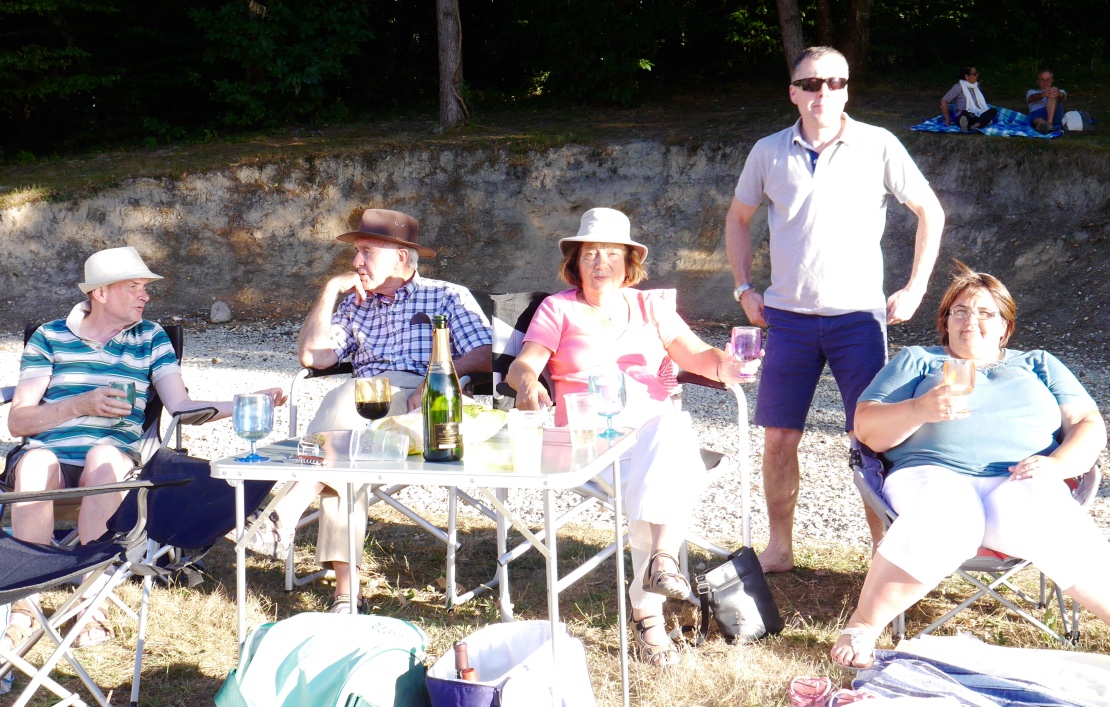 In the evening we went to a lakeside concert. The local small restaurant and campsite host a series of free concerts …. and sell a LOT of pizza & burgers and beer. This evening’s offering was the Blues night. A Belgian four piece, technically and musically extremely good. Unfortunately for us, they sang in English, so we could understand the lyrics. Memorable lines, such as: