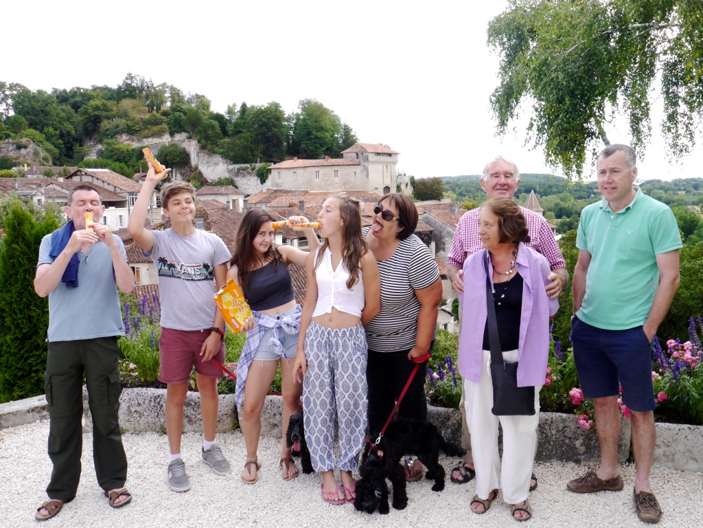 We ventured en masse to Riberac for our morning coffee and to visit the stunning market. French markets are usually good value for fresh produce and clothes / gift, but this one was par excellence. Bought all sorts of bits, from 3x magnification readers to a child’s handbag and foie gras!