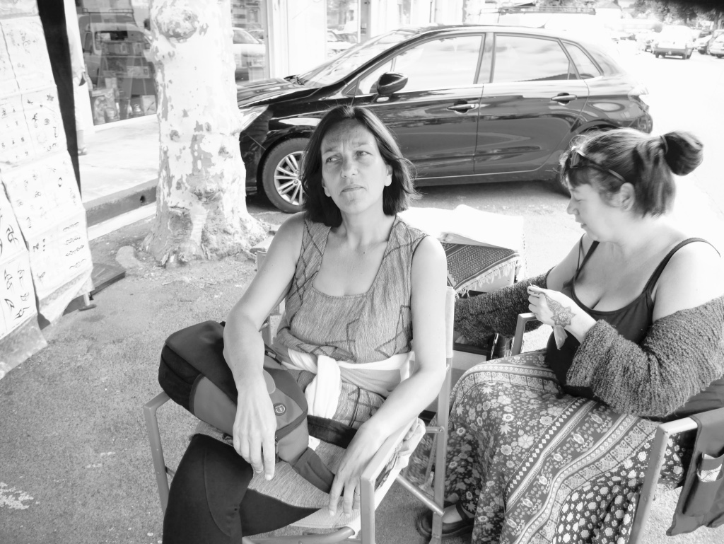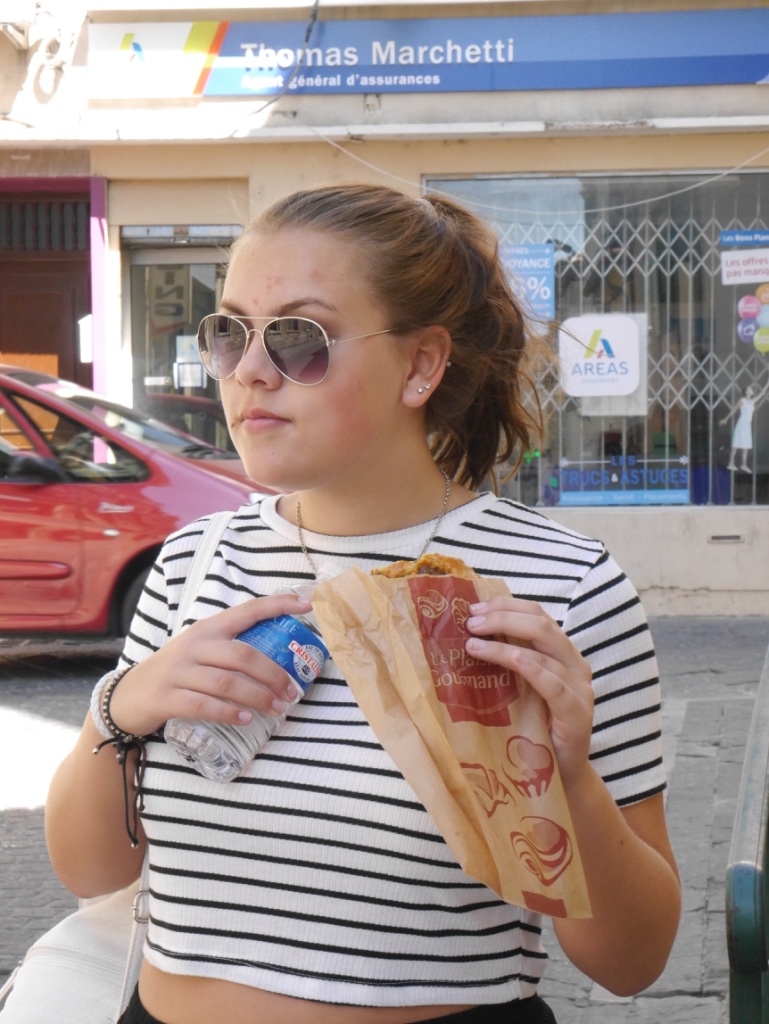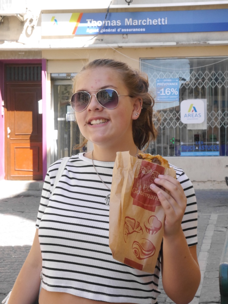 A wander around Chalais market and the obligatory cafe – grand creme.  It’s all Niecey’s fault … she suggested it!  K ended up with a tattoo on her arm …. similar to henna so it will fade.  Unlike Maddy’s new tattoo, a Taurus branding on her thigh done in Lanzarote last week.