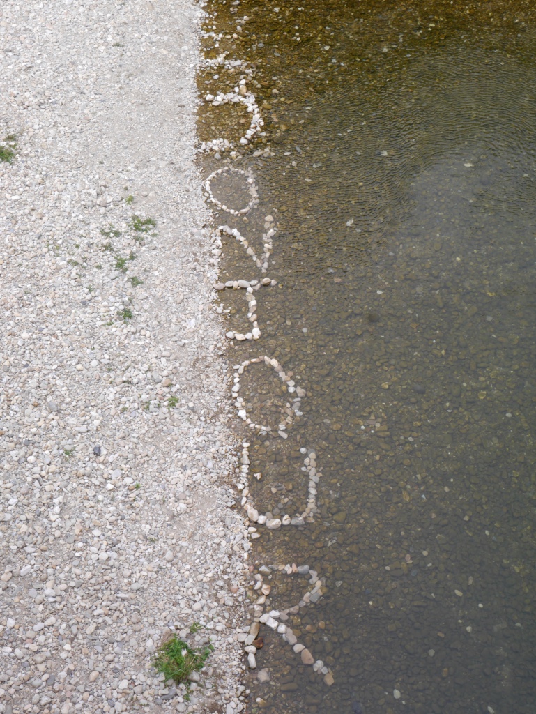 Again, Maddy slept whilst K and J ran.  After striking camp, we left Chardonnay on the pitch and crossed the bridge to the pretty path that led to the village of Saint Enimie for a coffee.