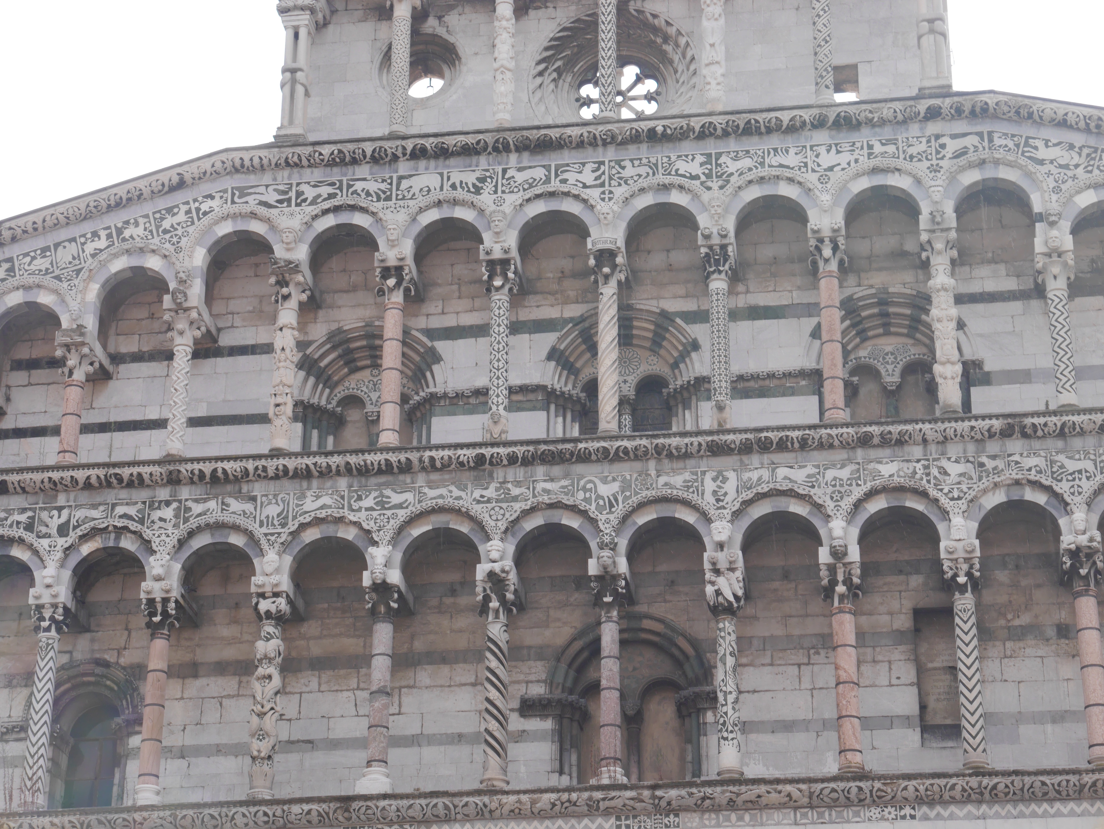 Coach to Lucca; regular grid of streets that were established by the Romans and completely surrounded by high ramparts. Churches were a sign of wealth and due to the silk industry here and the Pilgrim route, Lucca had dozens of them. 15 within the old town are still practicing churches.