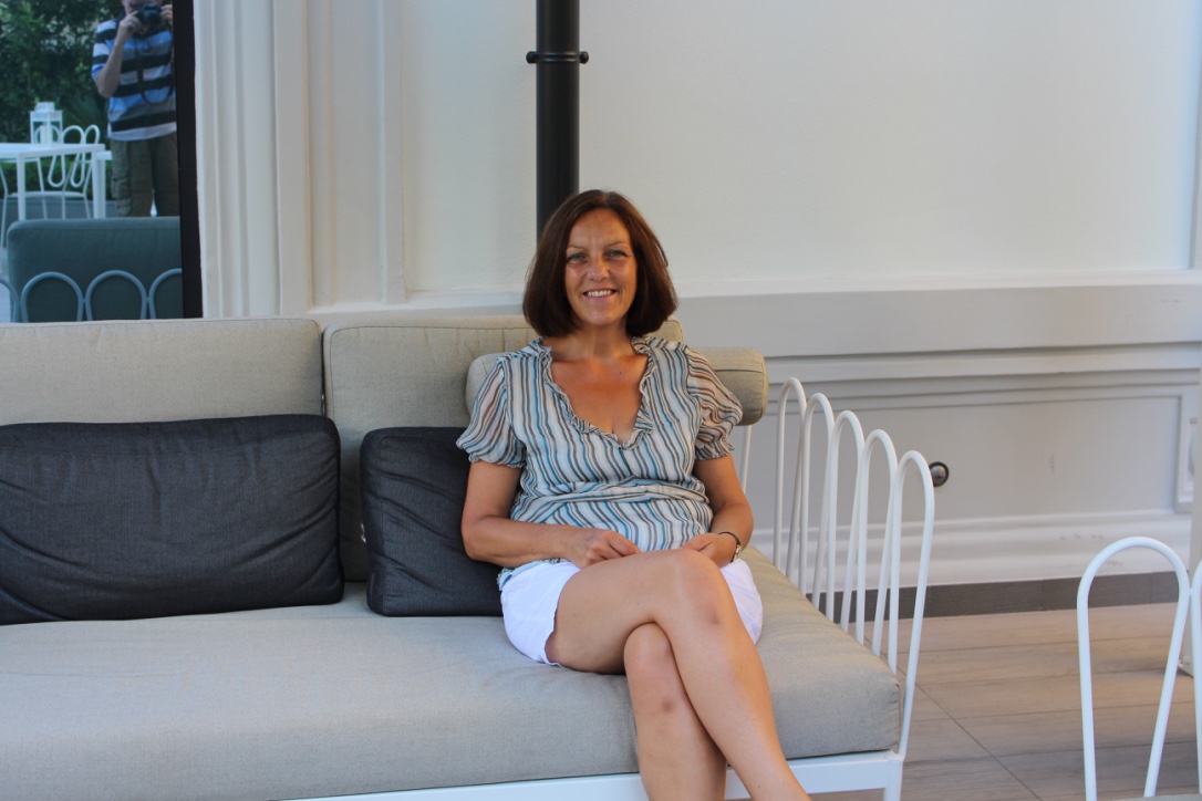 Cool terrace for lunch with regular sprayed mist to cool us. We saw the white cattle our slithers of succulent beef came from and drank the local wine.