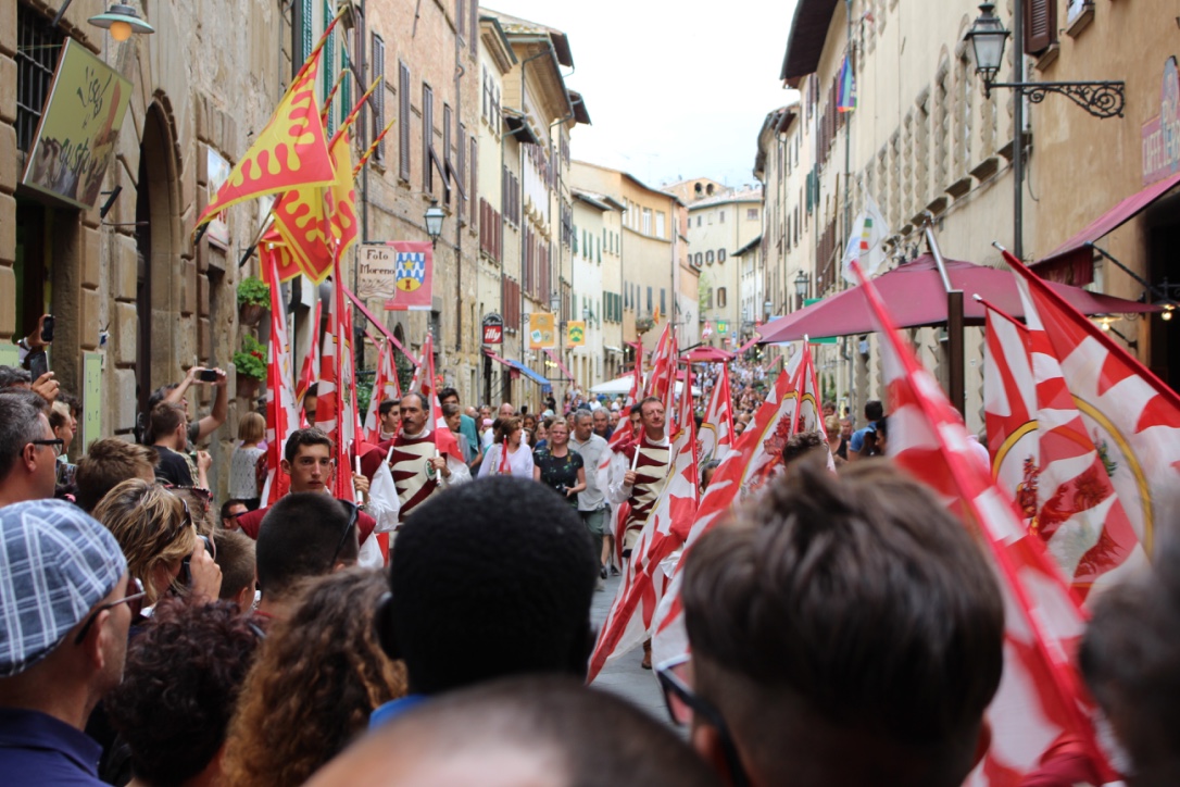 Our first stop was San Gimignano where we had free time to wander and have a coffee (wine in J’s case … the local Chianti was begging to be tasted!). The town has about 11 remaining towers and the view on the approach was stunning. Lovely mellow stone and squares. Views from every side. As it was the Feast of the Assumption, it was brimming with people and cars trying to park … again we will come back out of season.