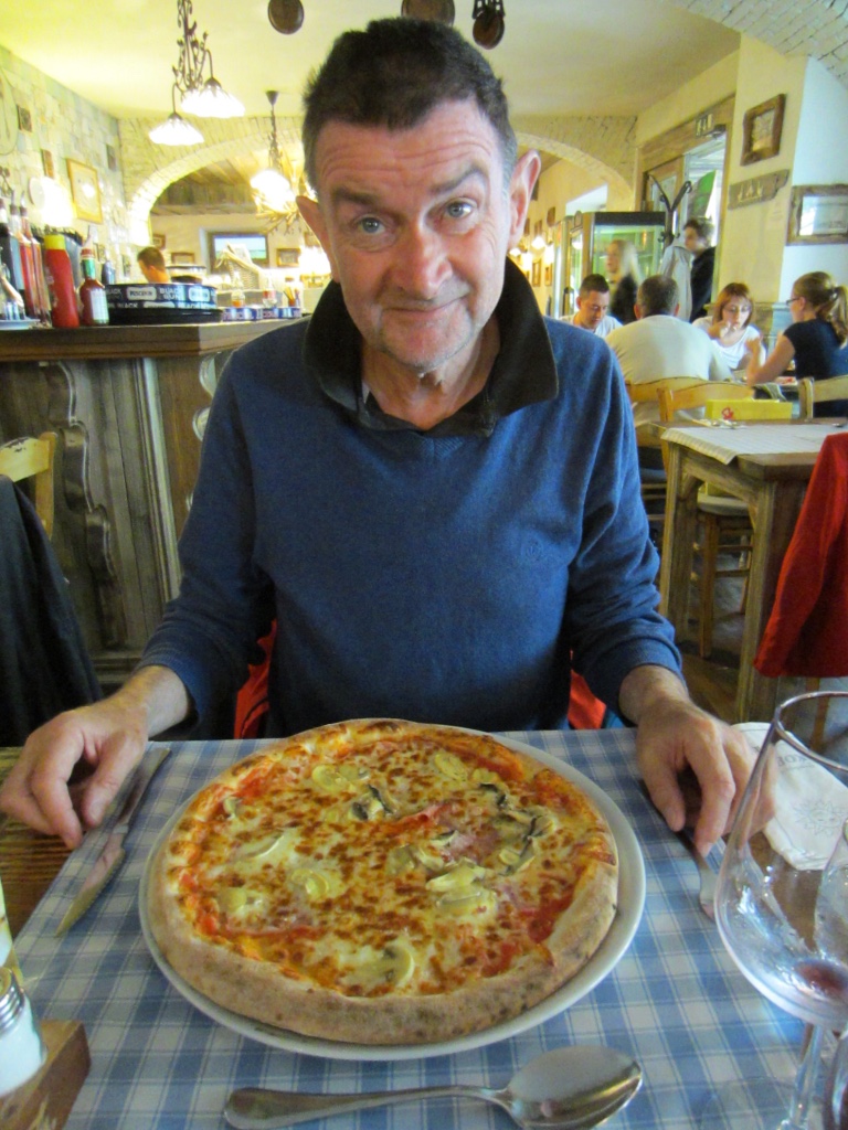 Having triple locked the bikes, we planned to go into a museum …. oops! All the museums and shops (except large supermarkets) seem to shut at lunchtime on Saturday! So if you work full time and need to do jobs, there is no chance of a lie in Saturday morning. Given we could not be cultural, J’s tummy rumbled, so we went gastro instead! But when a pizza, a delicious soup and 4 glasses of wine (albeit small) only costs £12 including the tip, it would be rude not to!