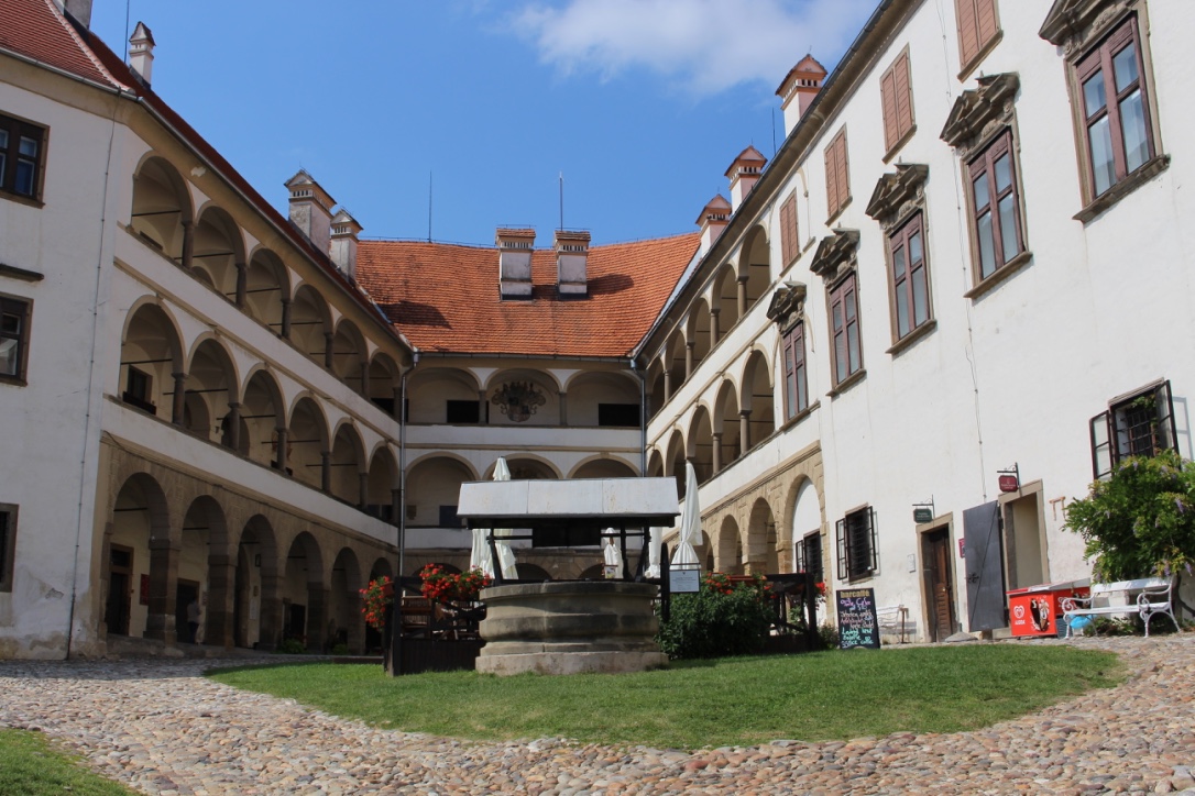 We drove a short way to Ptuj, the oldest towns in Slovenia with a compact centre. Having finally found a place to park, we promptly found the TIC and a cafe. Two coffees and J had a cheese and ham toastie – all of £3.80! Walked up to the Castle and I am booked to move in! It was owned for centuries by the Counts of Leslie. One of the relatives was a Scottish Leslie. LESLIE is my family name and we came from Scotland (there is also a town called Leslie), but we can’t have been very popular in Elizabethan times as we were sent to be landlords in Ireland.