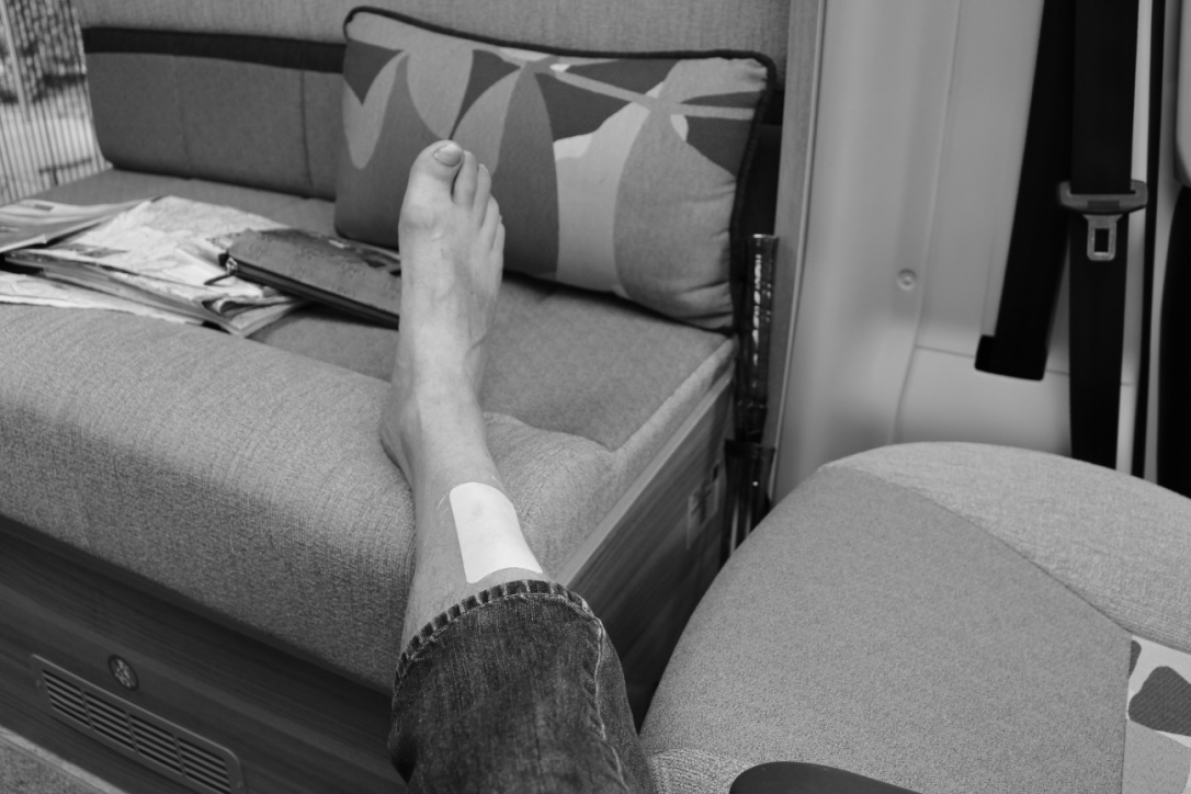 Still EUR28.34. BUT I made good use of the hot water and did a massive hand wash. J rested his leg … slight mishap with a bicycle rack and a shin wound.