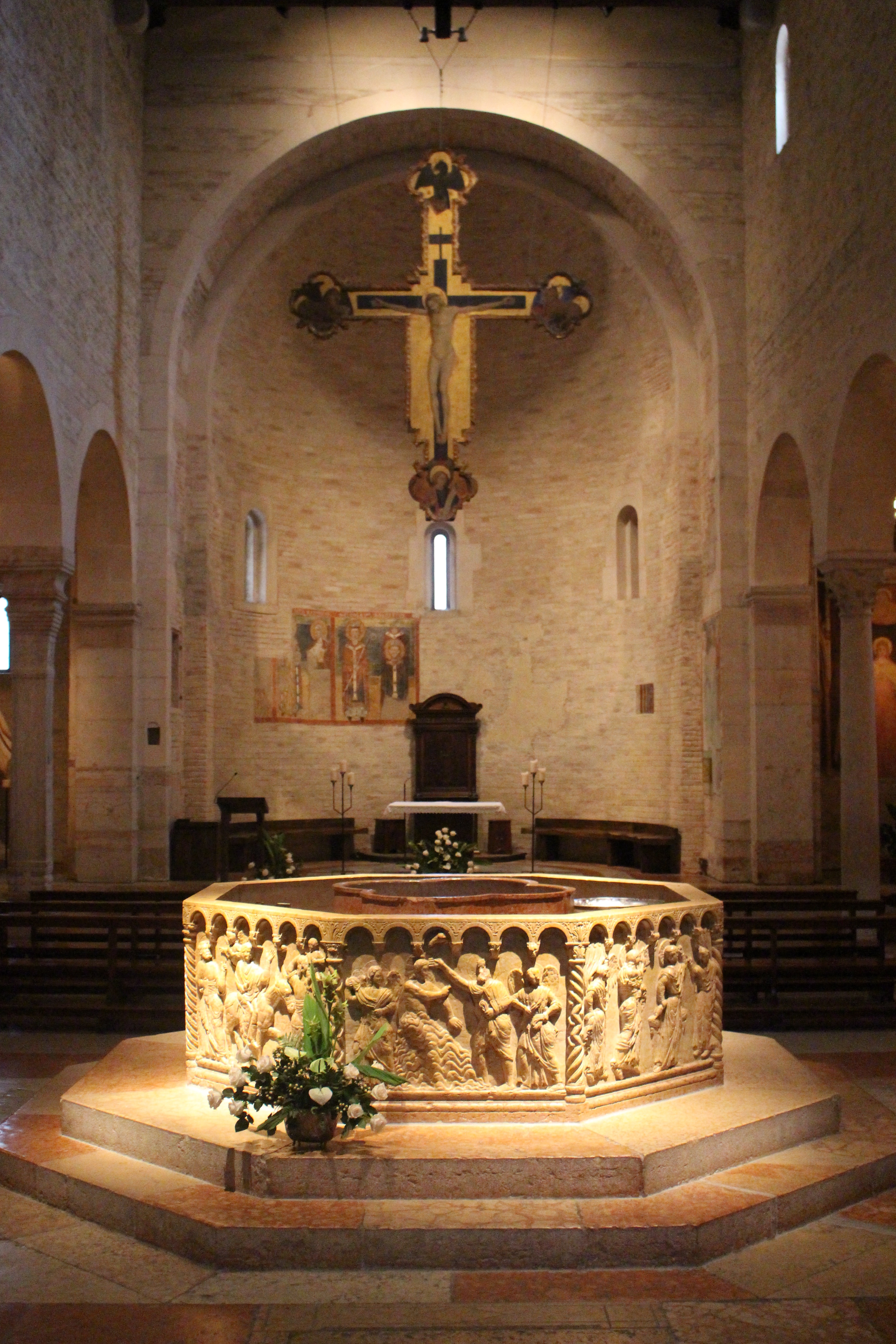 Cathedral, Bishop’s Residence, cloisters, baptistry and old mosaics and excavations. Less interesting than the two previous churches which both had something different. Most memorable is the font carved in 1200 from one piece of stone.