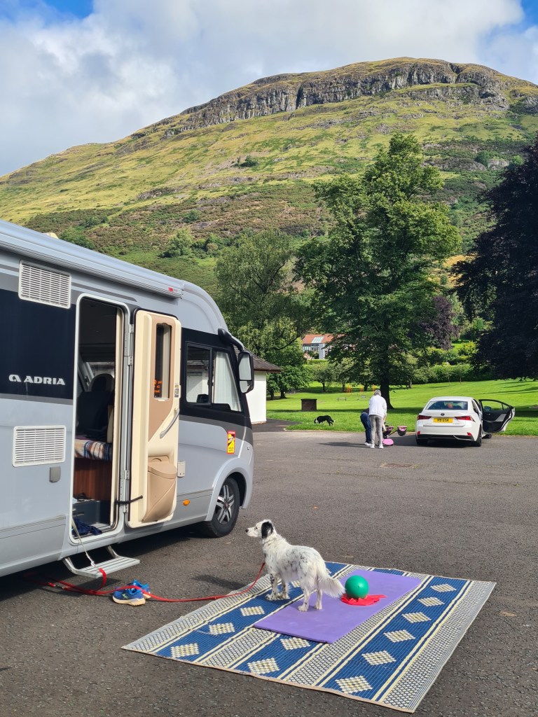 Did you know a little mashed potato, egg and cooked onion makes an amazing potato pancake?  A first for us and served with cheesey scrambled egg.  A good start to the day!  I did my 2 day shop at the local butcher and Coop … every town has one.  Eventually we set off for Dollar. Detour via the Stirling Outlet Centre … 5 outdoor shops but a little short on stock, but picked J up some walking trousers.