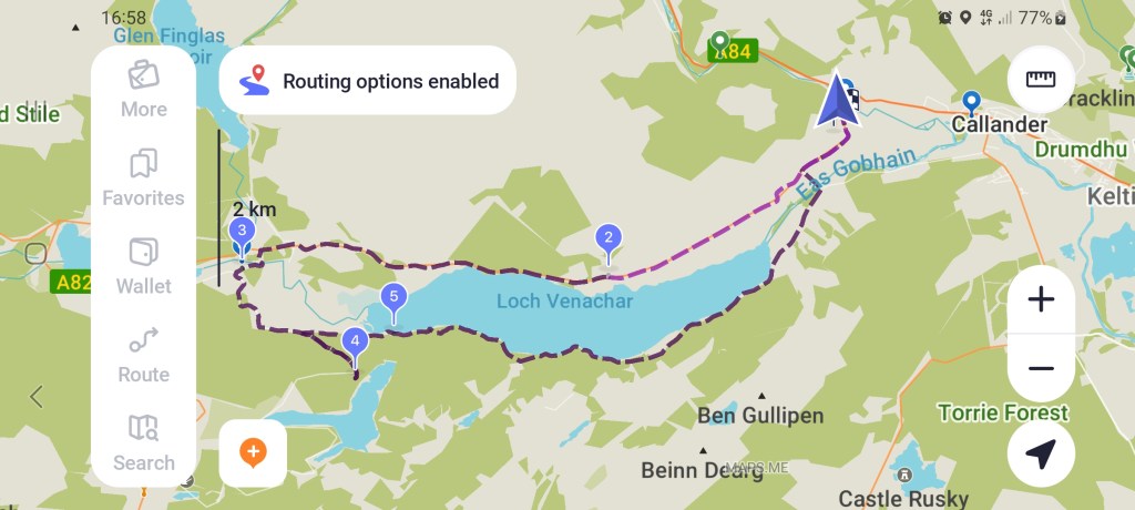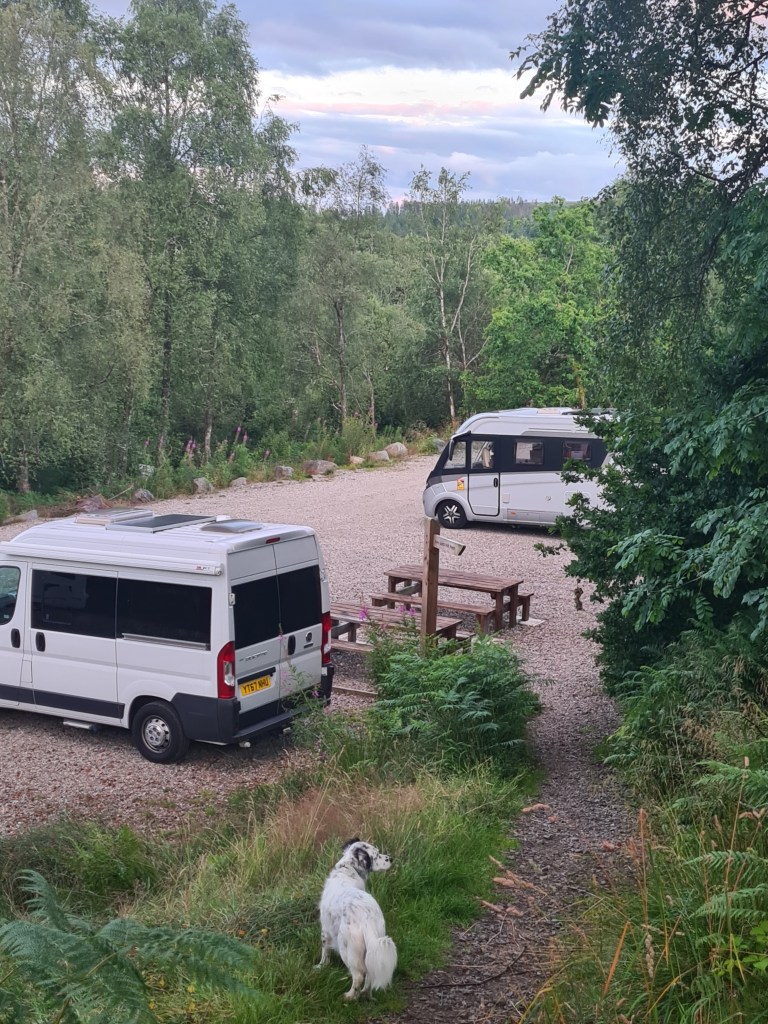 We obediently did a 5 point turn in Callander as the road to the destination car park said no motorhomes. The main town carpark had a cluster of motorhomes, but signs clearly saying no sleeping in vehicles, although apparently some do. Paying for parking was a pain … none of the machines accepted cards or cash. It had to be done through a parking app. What annoys me is that they charge an extra fee so £3.40 became £3.70 for 24 hours … but no staying over night!