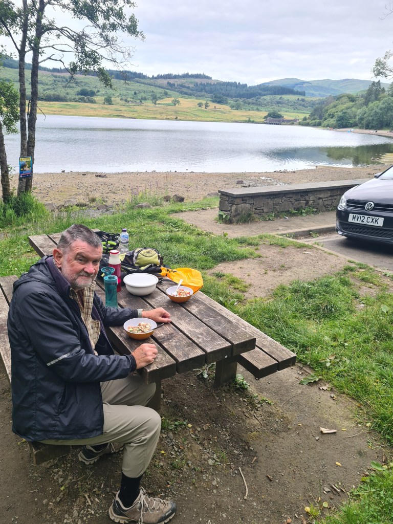 Stopping first at Brig O Turk for coffee and cake. Then, a short ride to Achray Farm for homemade ice cream. The flavours come from the garden, so today was meadowsweet and blackcurrant swirl. The milk from their own goats. Just delicious. Despite our sugar filled stomachs we still managed to stop later for picnic lunch.