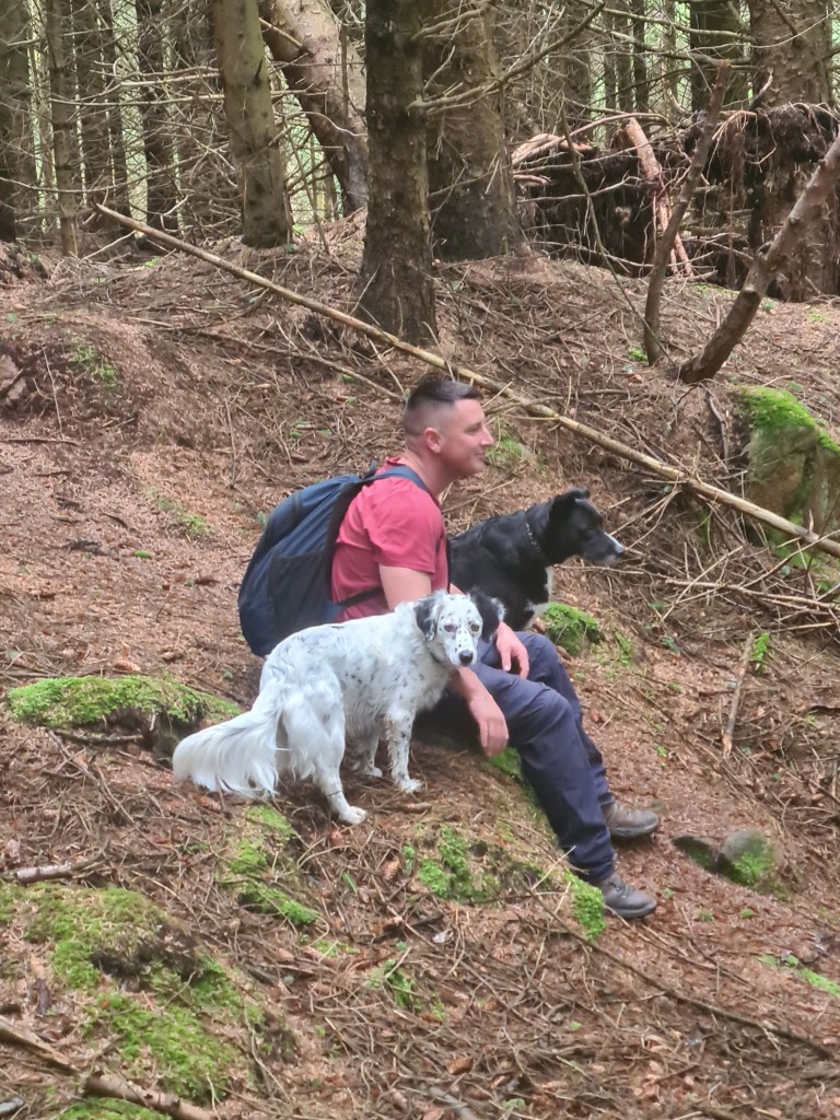 It wasn’t all jobs whilst we had 3 nights with Danny and Lisa. We walked both days. Tried to find a route to a ruin, but barbed wire fences prevented that. Then, the next day along the Solway Firth. We determined to come back via a hill top. I was navigating… why do people think I’m competent? I led us up a mountain bike track …some clambouring involved!