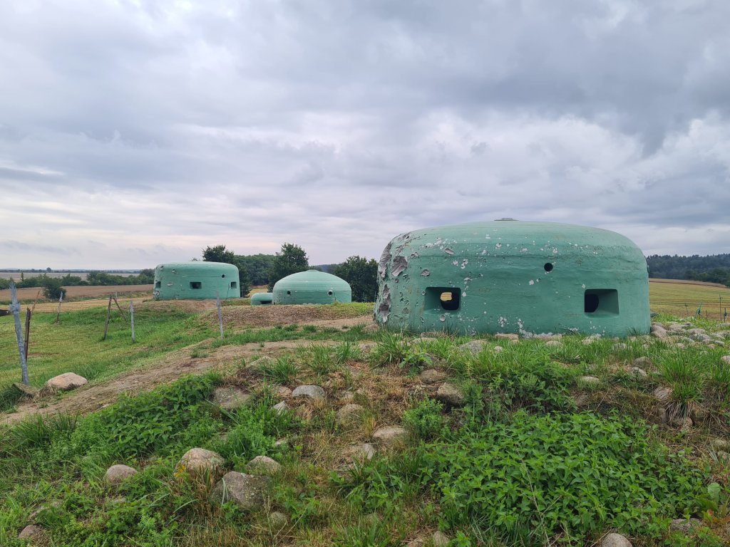 Overground bunkers, ventilation shaft and flame thrower. Damage to the left side from Russian guns.