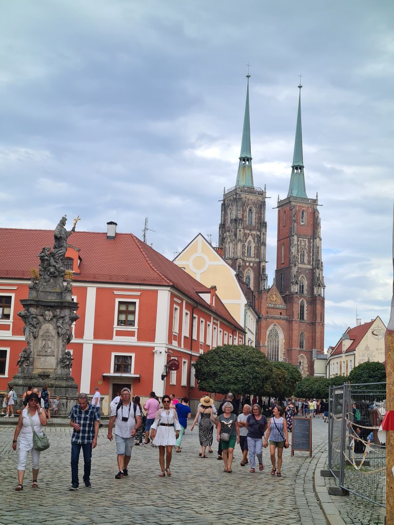 After a quick lunch, we went into Wroclaw.  No gps.my city downloadable walking tour, despite it being Poland’s 3rd largest city. I asked in the Tourist Information, but none available I was told!  I later found an interactive map, which helped guide us. In the meantime, we used the guidebook and tried to identify the main sites. We ended up on the original city originally an island, which houses the ecclesiastical area. Nice.