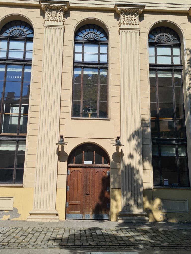 The synagogue designed to blend in. The square was the site of Krystallnacht.
