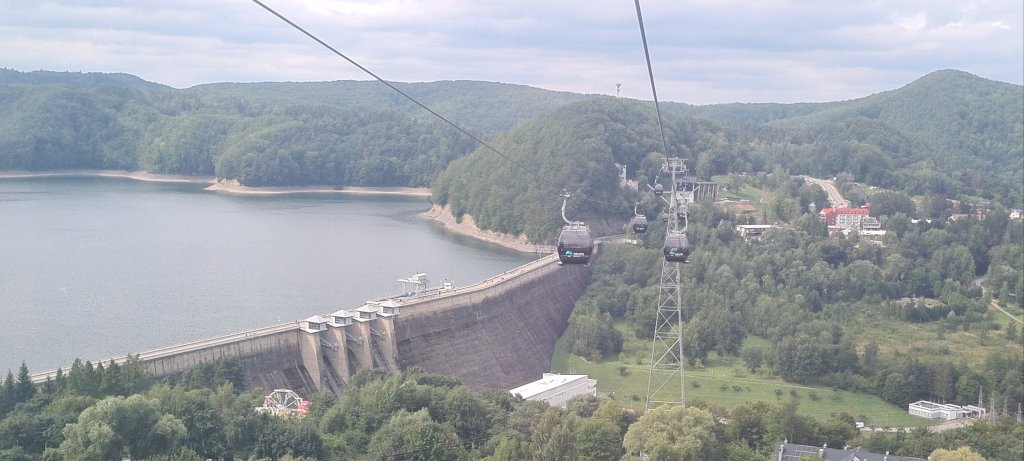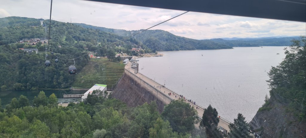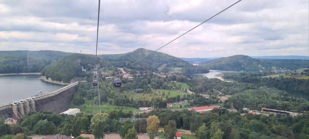 The main even was the touristy cable car ride at Solina. We would have liked to walk at the top or walk down, but no paths. Just a kiddies theme park and a restaurant. We shared an indifferent plate, and neither of us finished it. Our first not good Polish meal. We had paid £2 to take Corrie up in the cable car, but she nearly wasn’t allowed down. She needed a muzzle! But we weren’t told that at the bottom! You’ll have to carry her. But she’s 13kgs and doesn’t like being carried! We compromised on keeping her on a short lead.