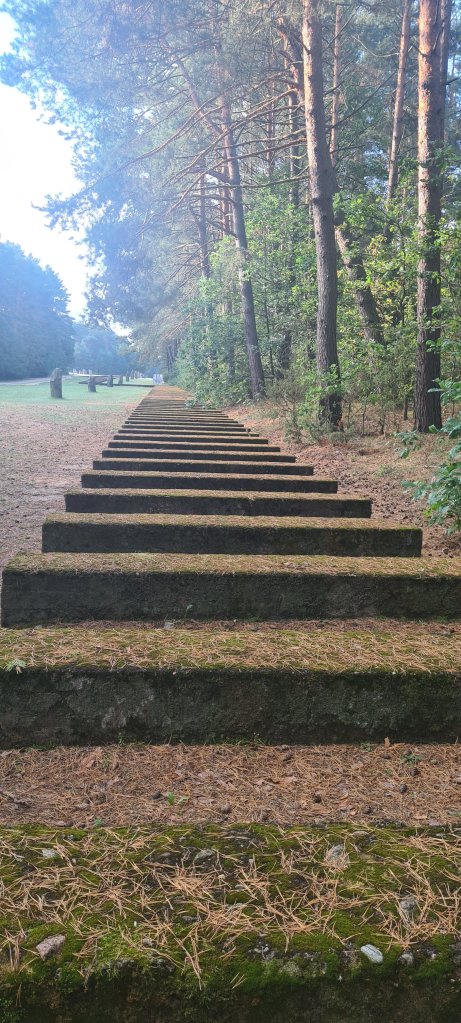 We arrived at the Treblinka parking at 0830 before the museum opened. I just hoped staff didn’t think we’d overnighted here. The map showed that it was about 3km to the site of the labour camp. J fed Corrie and then I took her with me for the walk. J stayed behind to have his breakfast. Poor Corrie probably wished she’d stayed behind. She is the laziest dog. Once she’s done her business, she hopes to turn back. Every time I read an information board, she hung back in the hope that this was my final destination and that finally I’ll turn! We clocked up over 7km. The sheer size and scale is overwhelming.