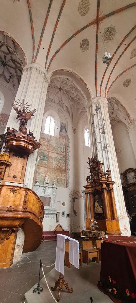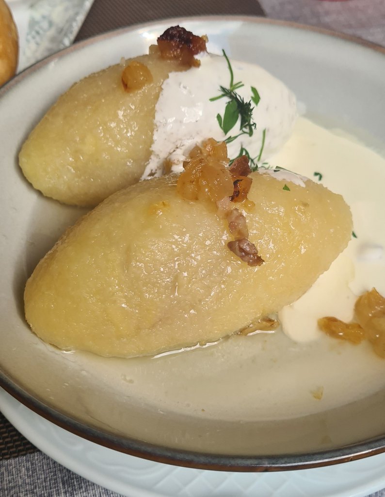 Of 9 city gates, only the Gate of Dawn remains C16On the other side is the chapel is the icon on the Blessed Virgin Mary Mother of Mercy. This and other artefacts are said to protect the city and bless travellers. The lady in purple just wouldn’t move, despite another tourist yelling at her! Inside the Holy Spirit Orthadox Church. Unusual green iconostasis and the bodies of 3 saints. The Cathedral that doesnt look like a cathedral! Remarkable for its simplicity and high side chapels. Reconstructed in 1770s. Really liked the dripping Gothic facade of St Annes’s Church 1495.A school group reluctant to move an risked a shower from the tree watering team. Some really pretty streets. The university was founded originally as a Jesuit college in 1579, making it the oldest university in the Baltics. It has 13 courtyards and we mingled in a few with the undergrads.Palace of the Grand Dukes … only completed 2018 and a museum Views from Gediminas Hill … we caught the funicular up and downWe shared two startersBoth yummyDidn’t manage to eat all of this … potato dumpling stuffed with meat. Called a Zeppelin, but more like a lead balloon than an air balloon. Guess the name is due to the shape.