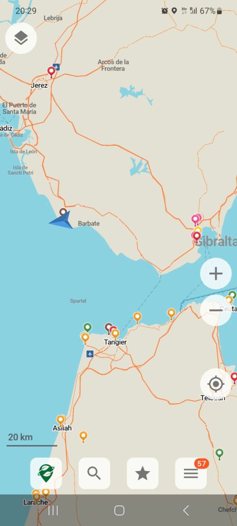 We set off at 0500 from the Aged Ps house for the 0910 DFDS ferry on 3rd October. Comfortable in the premium lounge az as had a credit changing from Jez to a normal car. Two nights en route. We are now ensconced on a campsite between Cadiz and Algeciras for 3 nights. A no driving day after days of 12 hrs, 12 hrs / 1000k, and 10 hrs / 900k. David and Karen are arriving today.