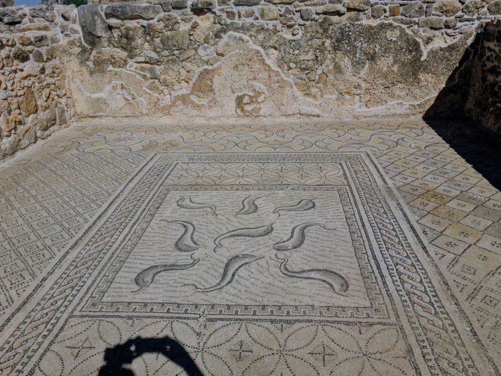 We spotted where the tour groups were standing, which alerted us to something of note. Mostly mosaics. Fairly well preserved, although how long will that remain the case with bring exposed to the elements. And a layer of sand dulling the colours. Twas on the outreaches of the Roman empire. €10pp. So totally good value.