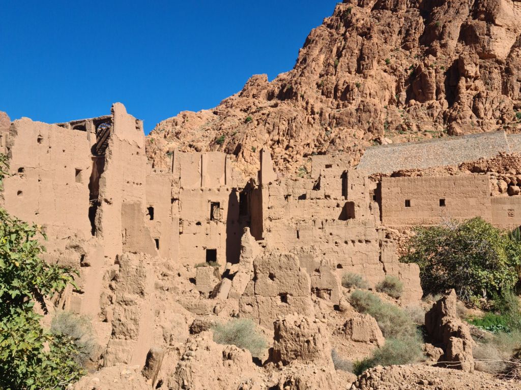 Two properties had been rebuilt. Presumably, locals still own the derelict buildings and plot of land. It’s amazing how mud houses could support 3 storeys. Reading, they need repair and work annually.