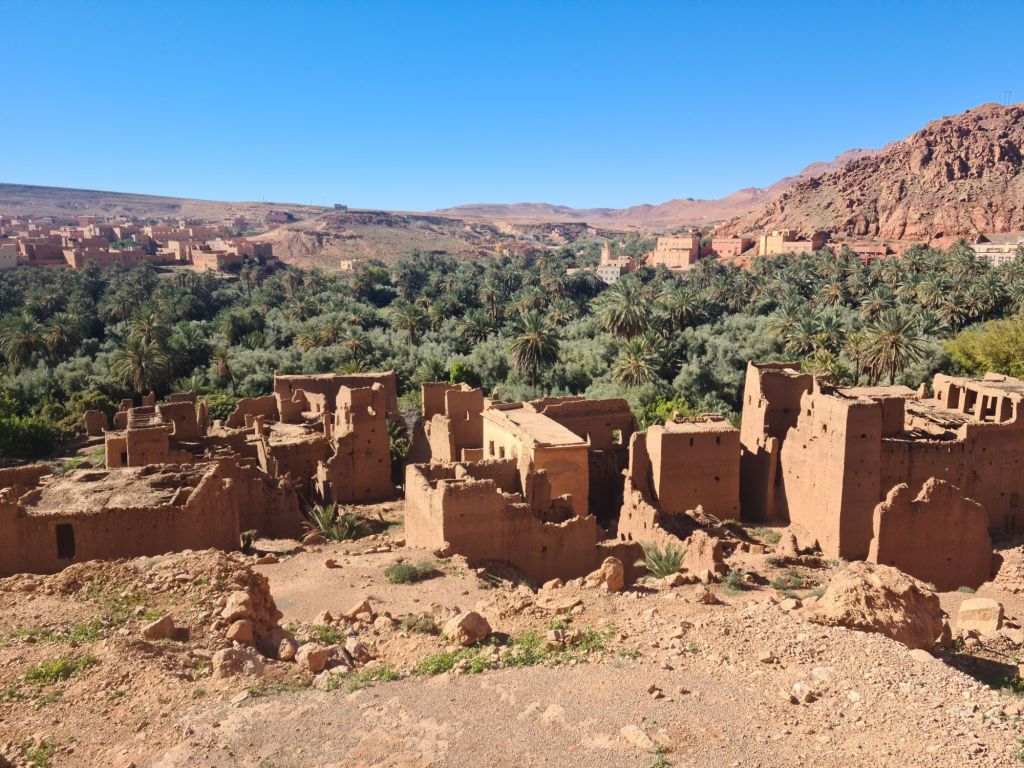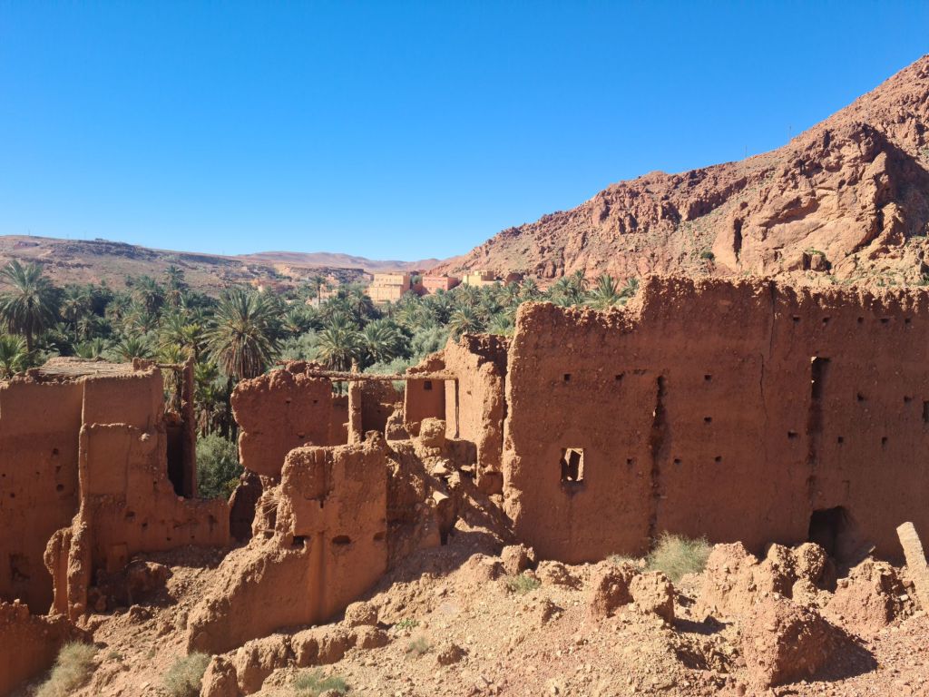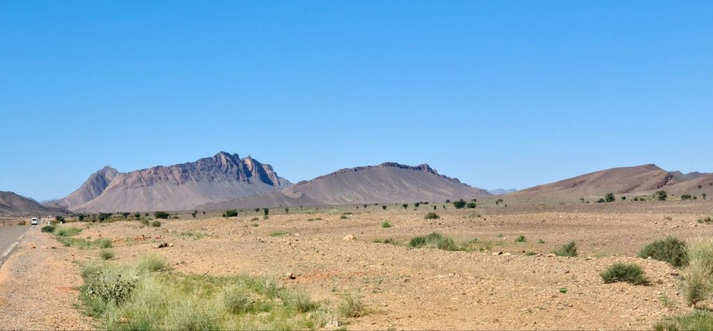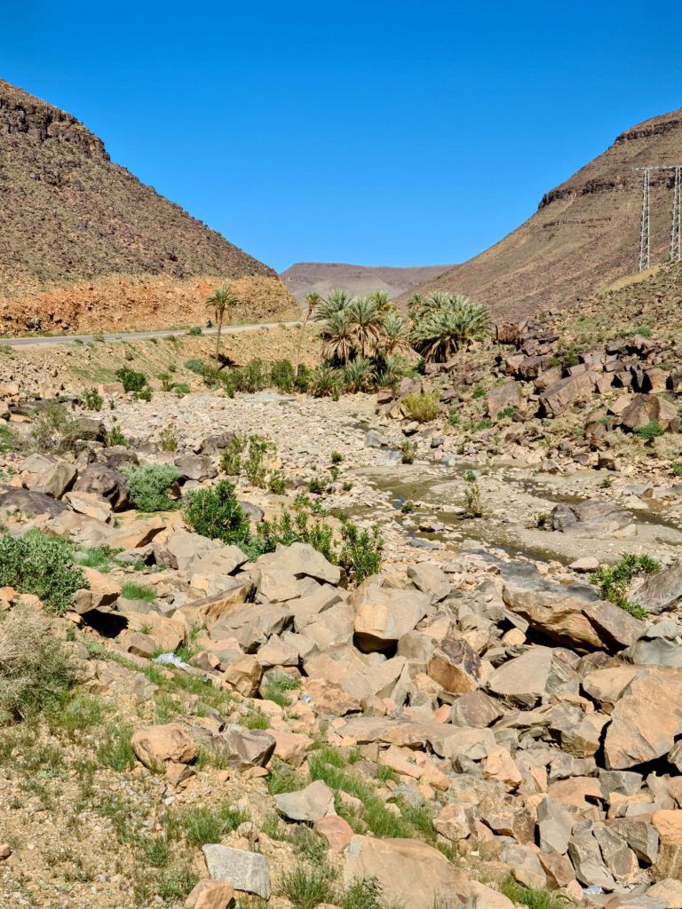 Amazing colours and textures. But initially, so barren. Not life supporting.  As we approached our destination, Tinghir, lots of palm date plantations.