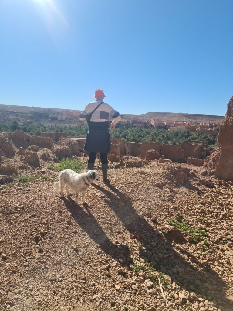 Brian poorly, so we took Zoa. We started with a 7km walk in the date palm oasis. After 20 mins, Zoa settled and stopped trying to go back and look for Brian. The palm oasis is basically  a long fertile valley.   Lots of predominantly women working the fields. A really lovely shady walk.