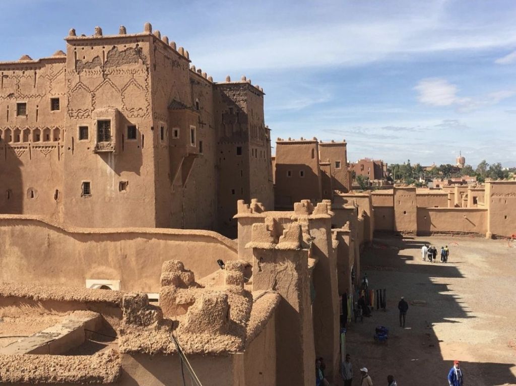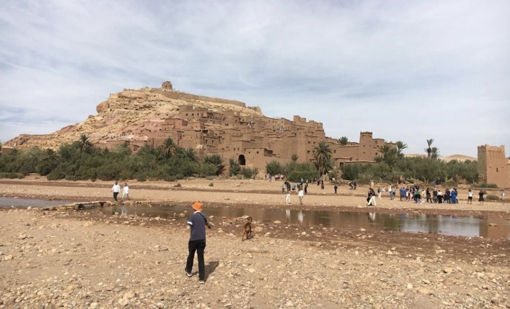 Drove from Tinghir to Ouarzazate (try pronouncing that with a mouthful of crushed ice)… just south of the High Atlas, gateway to the desert – no sign of Charles Atlas – some might remember – if a manly bloke didn’t send Chas Atlas money for bodybuilding, he got sand kicked in his face on the beach! The town was built by the French Foreign Legion in 1928 to quell the troublesome south. Didn’t you go to the Foreign Legion to disappear? The town was on major trade routes. There are telltale signs as we arrived – wide roads, lack of rubbish and sense of prosperity – the lack of rubbish is unfortunately not common in Morocco, sadly.