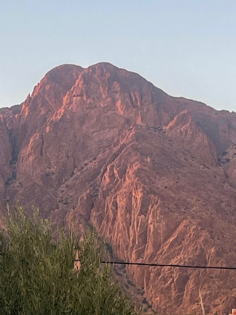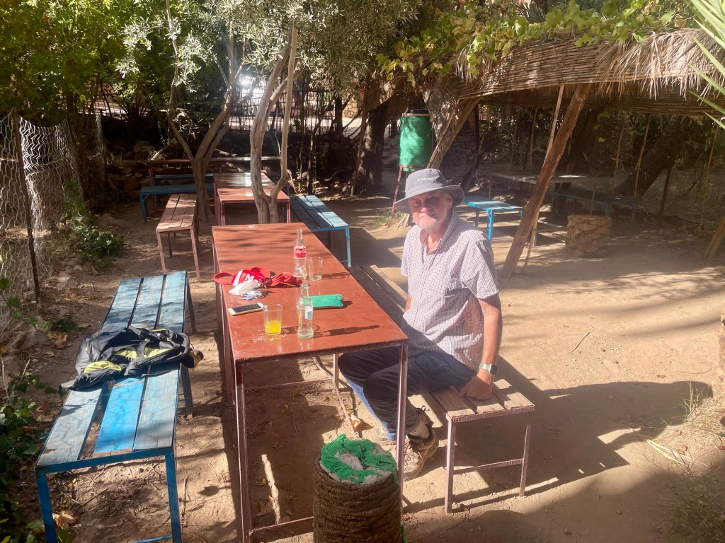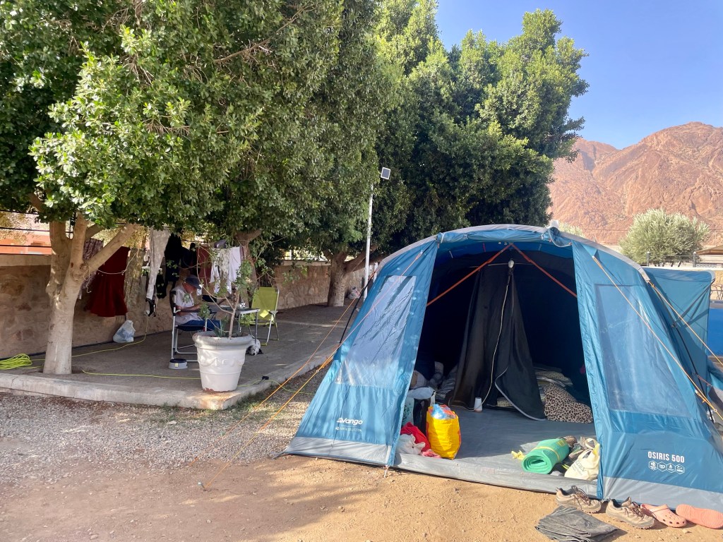 Drive to Taftout. Tent up in record time – it gets quicker – we viewed 2 campsites and settled on “le tete de lion” – the Lion’s Head – an indistinct shape in nearby rock. German noisy shenanigans at 2:00 am – K spoke to them at the time. K: I was impressed that I remembered a) to be polite and b) the word for quiet in German.