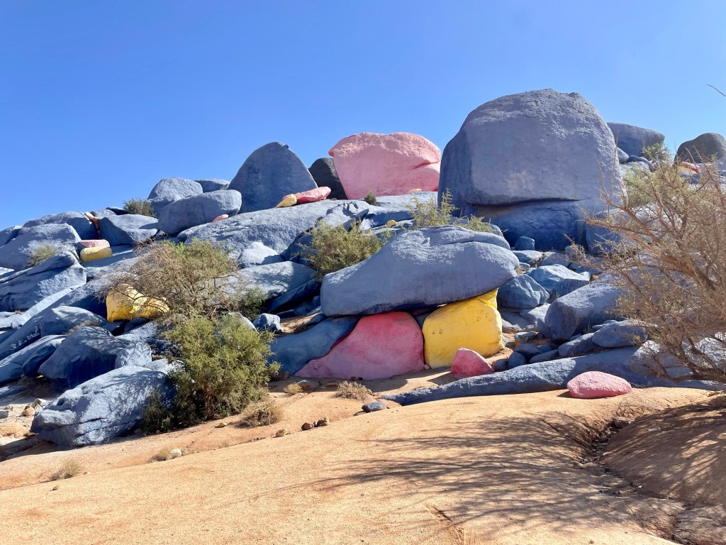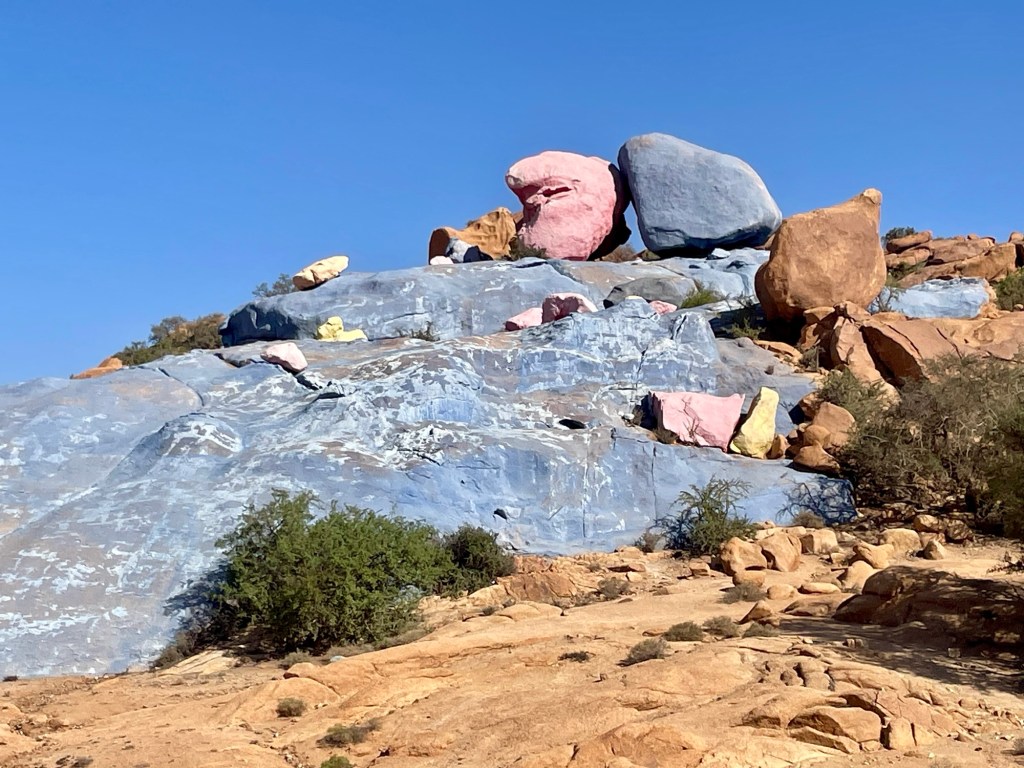 However, a drive to “Blue Rocks” was much more impressive – a Belgian artist, Jean Vermame, wanted a worthy memorial to his late wife – in 1984 he painted a vast area of large rocks – blue , pink and a little yellow – bizarre but striking.