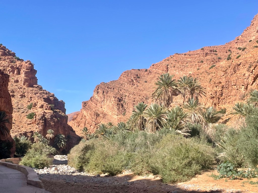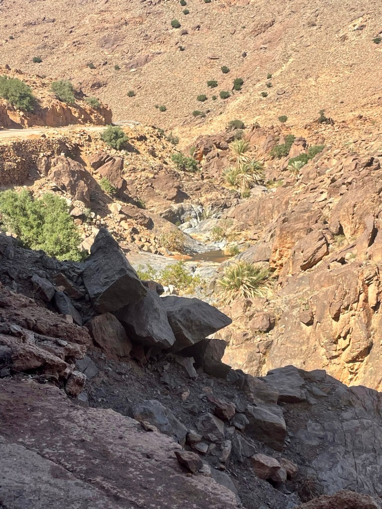Drive to an oasis via some narrow mountain roads with steep drops and some subsidence – stop for soft drinks and return on the same tracks.