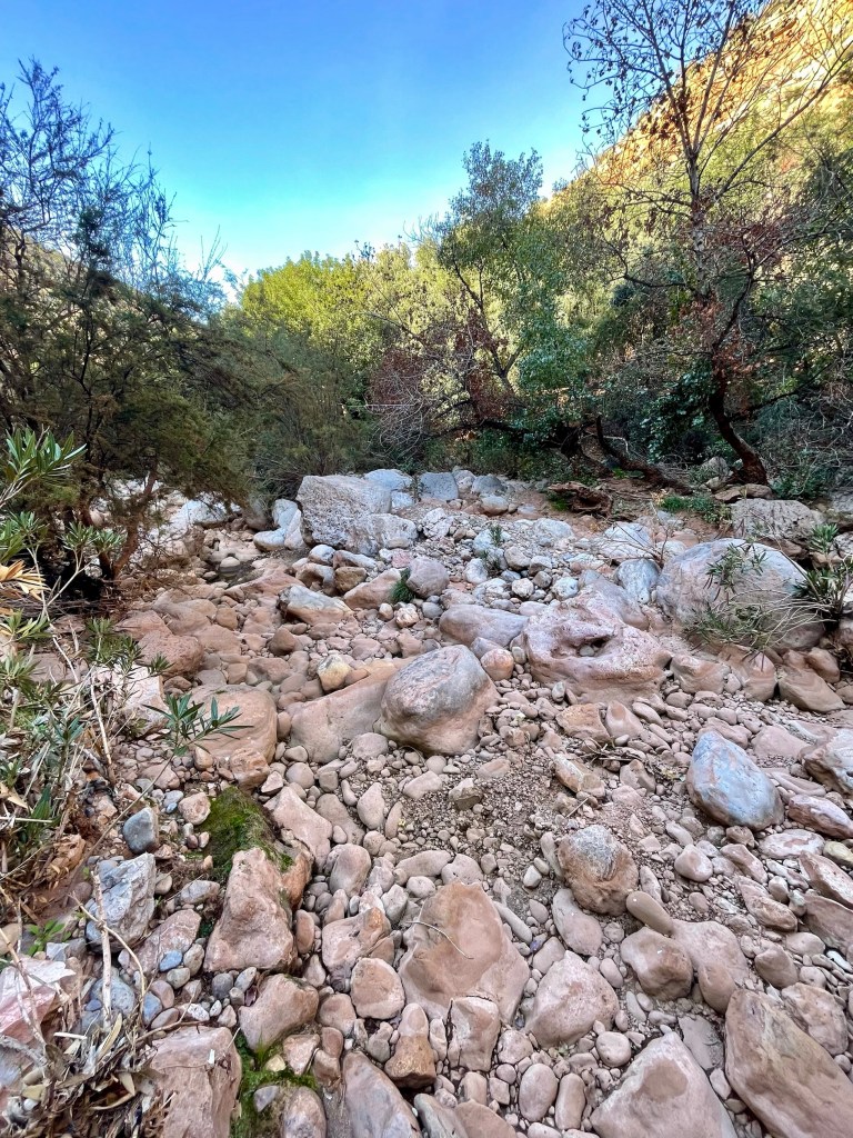 Finally back to the Source. We walked up the gorge. A couple of streams joined. A merest trickle. Till all dry. Tea sat in the sun on the return leg.