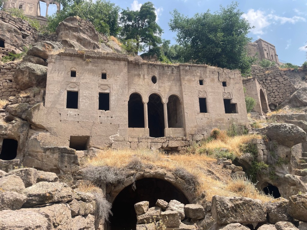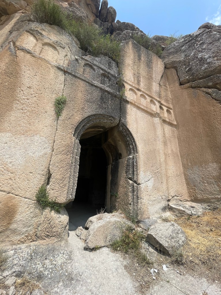 We elected to walk on to 2 rock churches; J’s ankle holding up well. Bit of a scramble to get down one from one. At least it is cool enough to walk about now … just. We were somewhat sticky by the time we got back up to the top of town. Lunch was another Pide and salad in the square.