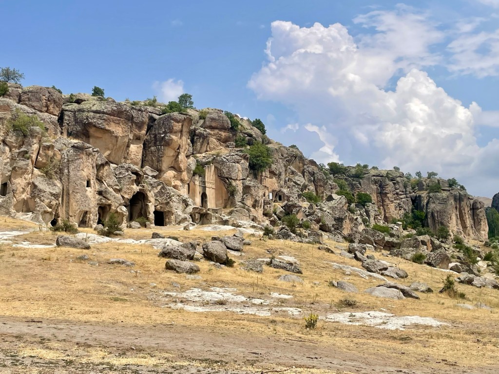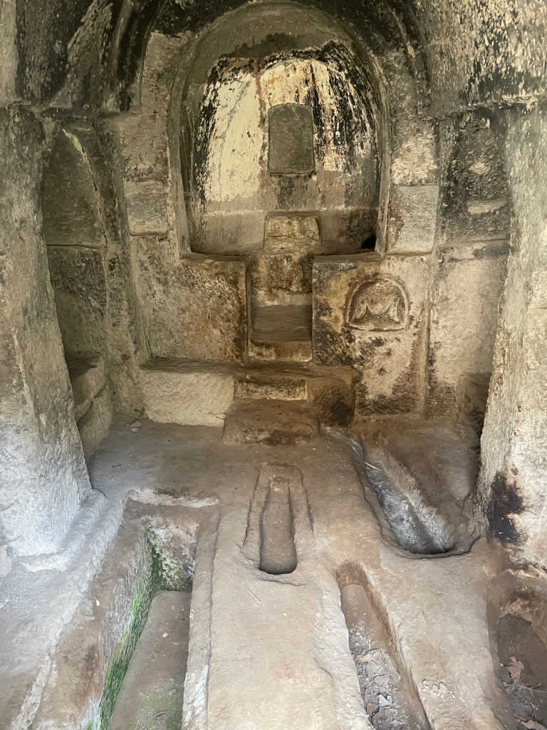 We parked at the top of Guzelyurt as unsure about the roads. Bonus walk down a little used track full of rock houses. Some had multiple rooms and fine carvings. I just love the idea of carving out a shelf or cupboard every time you need one. New baby. No problem create another room at the back or underneath. Or even over.