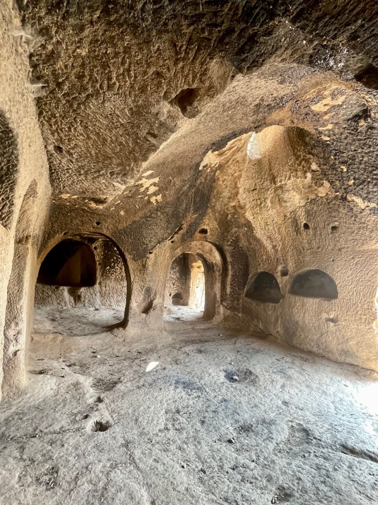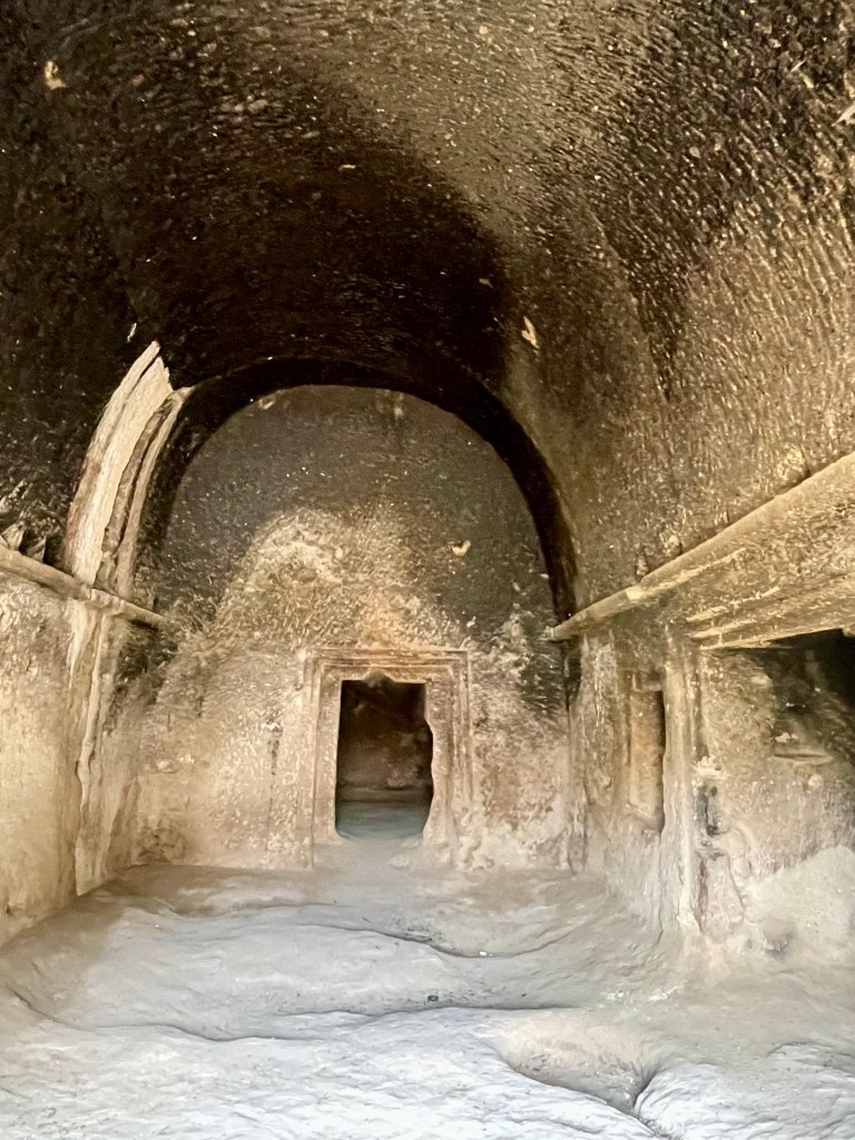 Into one on the underground cities. Quite a few had internal staircases. People must have had lung problems, as cooking was done on the caves and spotted few chimneys. And risk of rock fall? Some of the dividing walls were quite thin.