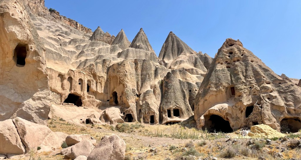 So the Selime Rock Cathedral may have a lot going for it. But €15 each was too steep. Yesterday’s Ilhara valley ticket would have covered it, but on the same day. Too much for us. So we missed the internal triangular kitchen etc. Just wandered around the outside.