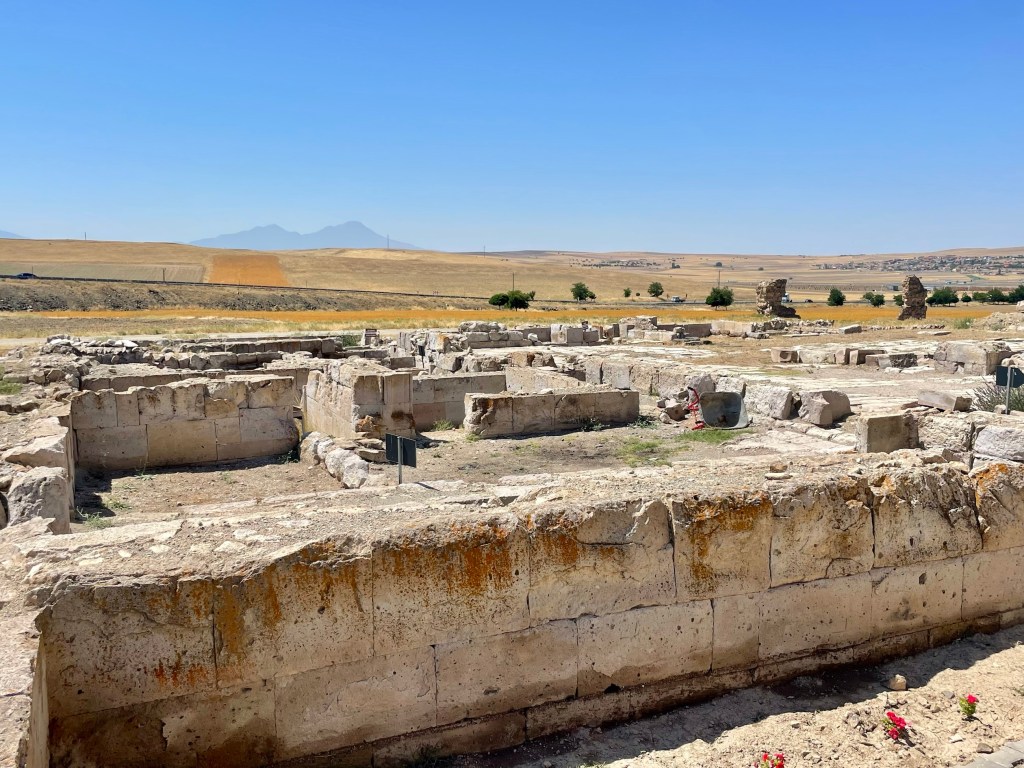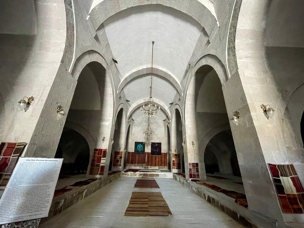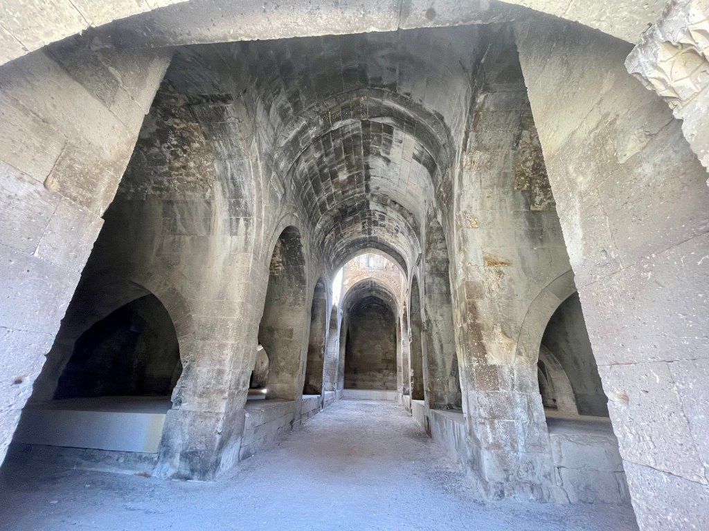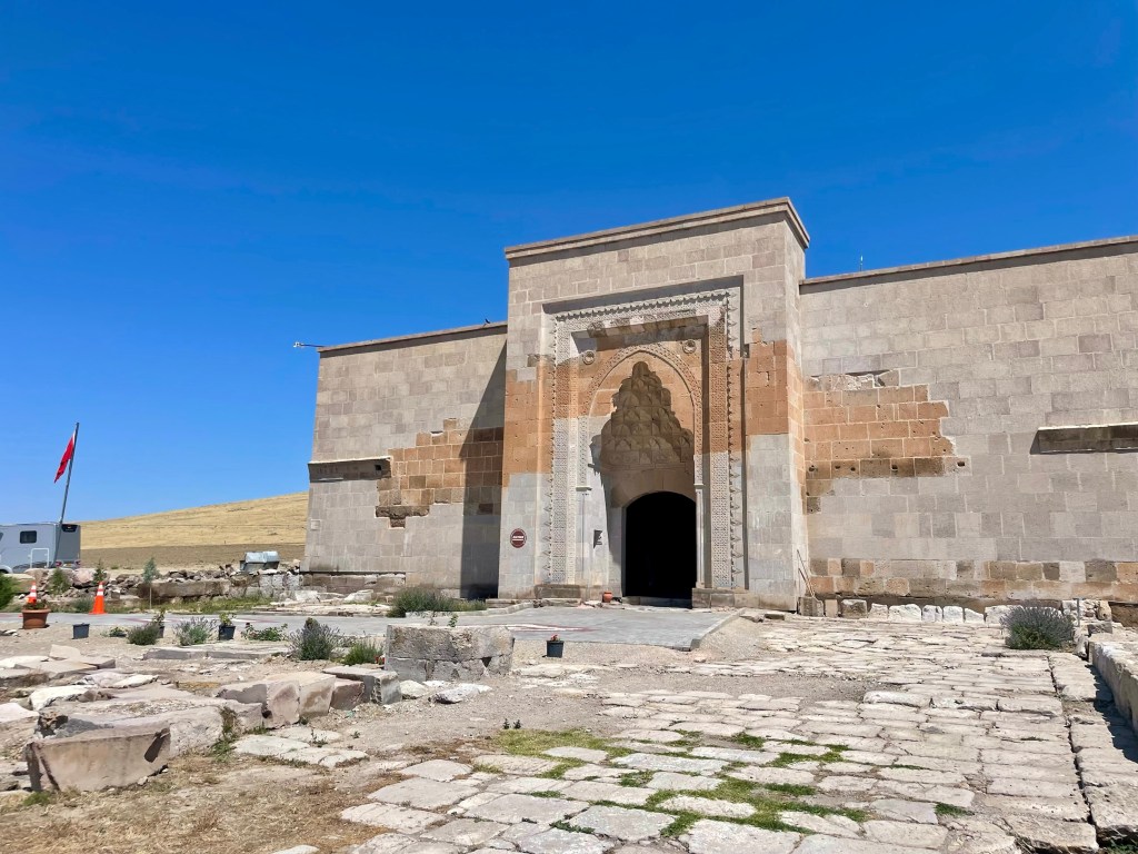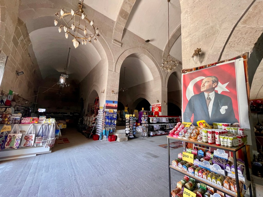 The Alayhan Caranaserai had an intact, much repaired indoor area and excavated foundations of the bathhouse and mosque. Perhaps aptly, now used to sell tourist tat. We didn’t stop long!