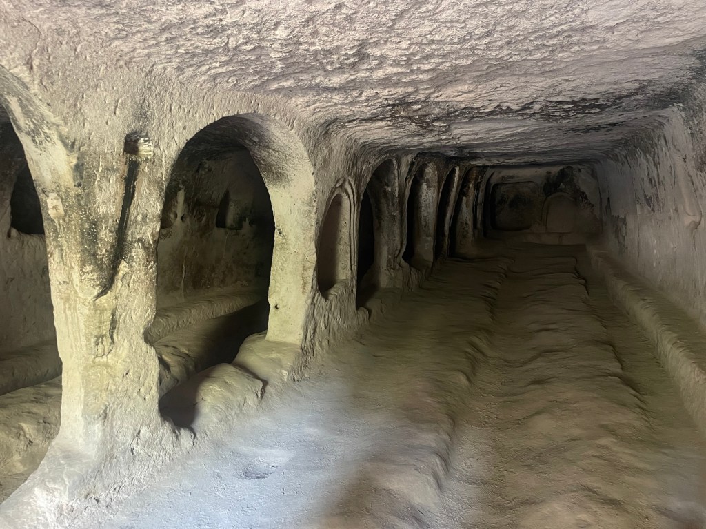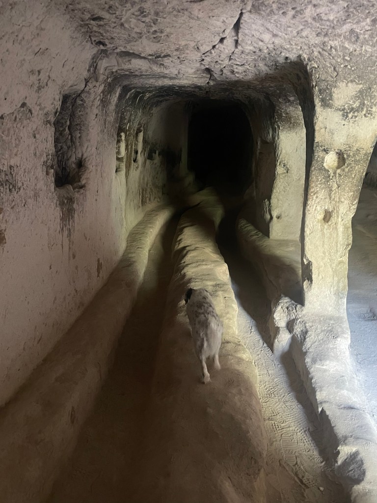 Keslik monastery chalk and cheese to Cemil church. These two churches, Byzantine and C19 Greek, are one man’s garden. Beautifully cared for, surrounded by flowers and vegetables. He relieved us of £2 each and gave us a brief intro. They are the most extensive cave complex monastery in the area.