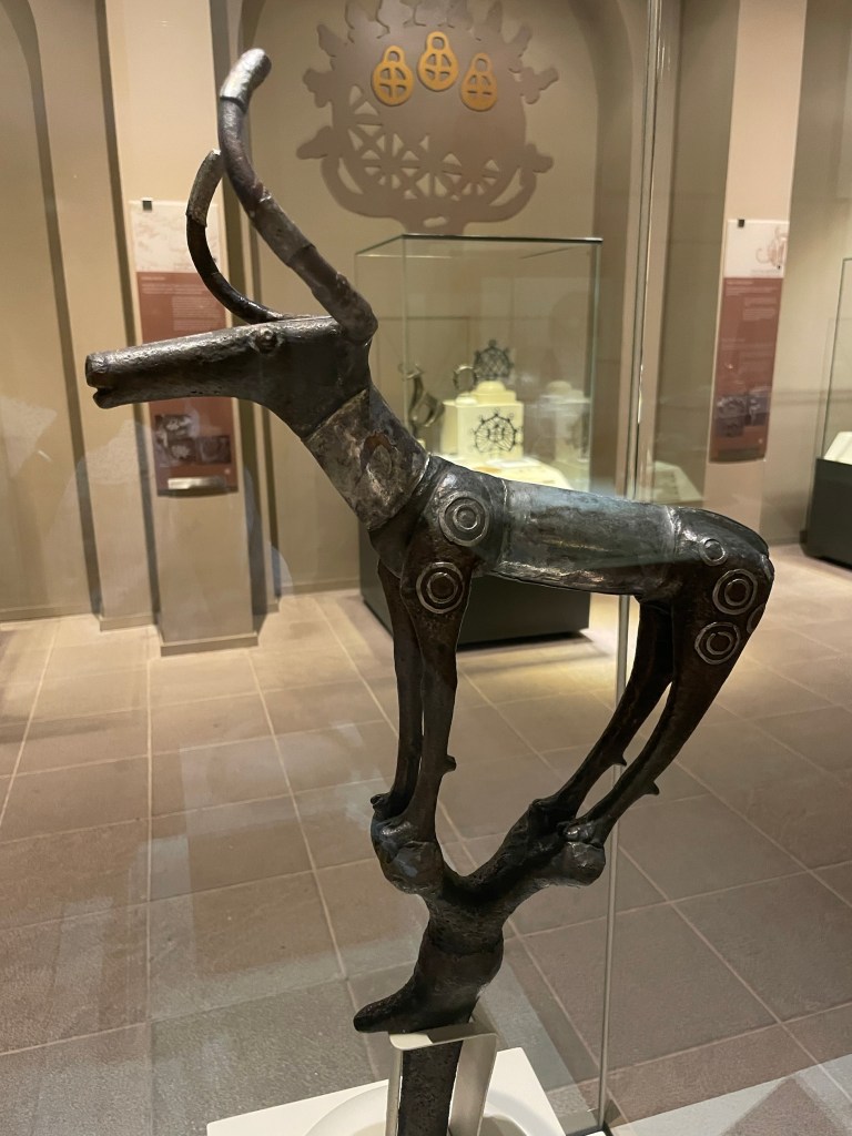 We spent a couple of hours going through the work using google translate. The head honcho was checking on the phone what could be out sourced. One of the mechanics kindly dropped us to our Ankara hotel. Dropping bags, we checked out the train station for tomorrow. A cheap taxi to near the Anatolian Museum of Ancient Civilisations for lunch. And then into the museum. Both feeling tired, we pretty much scooted through. Focussed on the Hittites treasures that had been found at the sites we have visited.