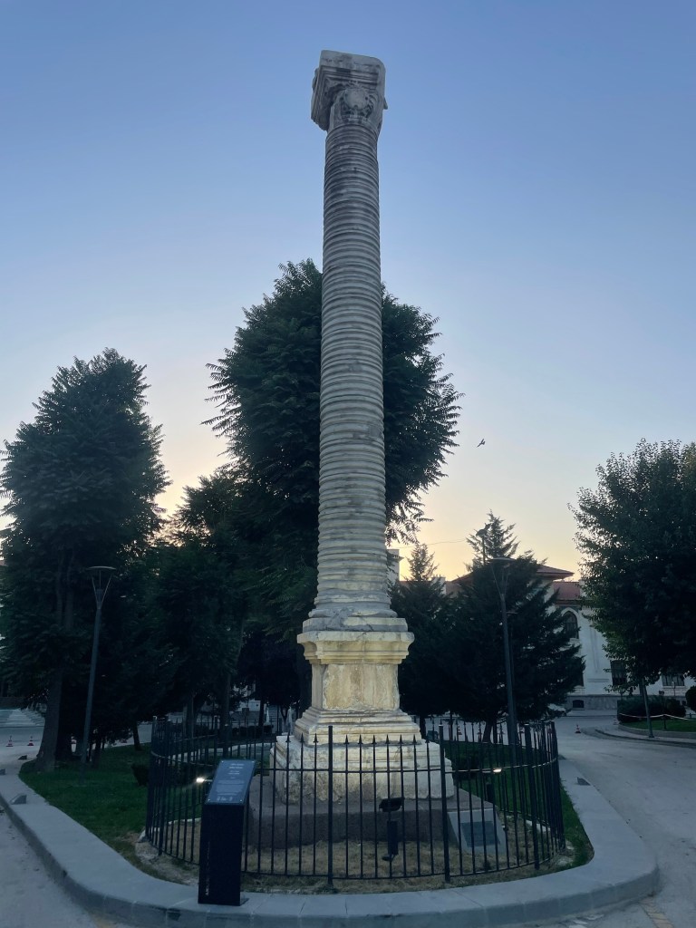 The Column of Julian was built to honour Julianus, the last pagan Roman emperor. He declared war on the Persians and passed through in 362. The city folk were so excited at his visit (all of them?!), they erected the obelisk. It is now in University grounds, but the nice guard let us through