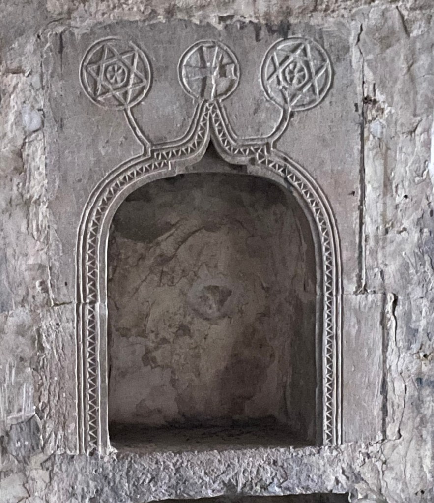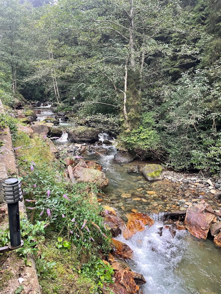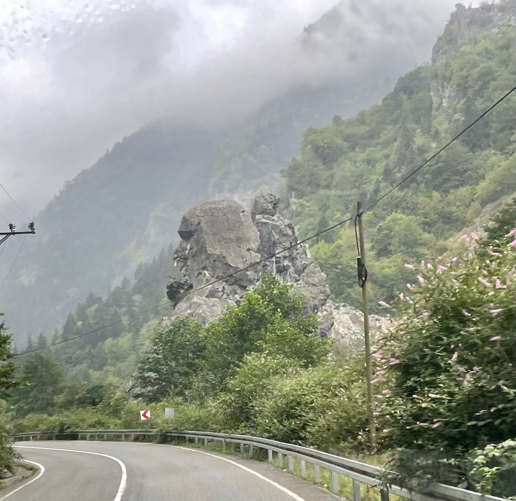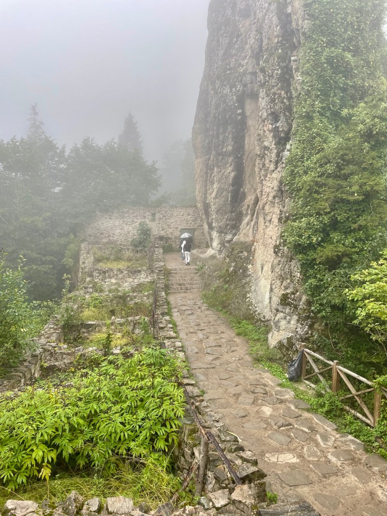 Our destination was one of the top attractions – Sumela Monastery. A Greek Orthodox monastery built into sheer cliffs. Originally founded around AD386, largely expanded during C6 and C13. It had 72 rooms including a rock church and various other chapels. It thrived and was a pilgrimage site until the population exchange in 1923. Thereafter it fell into disrepair, with a fire destroying wooden parts in 1930. The Turkish government funded restoration with it opening to visitors in 2011. It then had to close from 2015-2019 whilst they installed significant measures, including steel netting, to prevent rock fall.