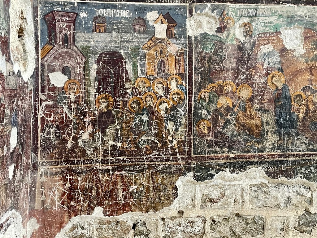 I had not expected so many frescoes to be on the exterior. Sadly so many badly damaged by graffiti. We got our steps in and it was very busy.