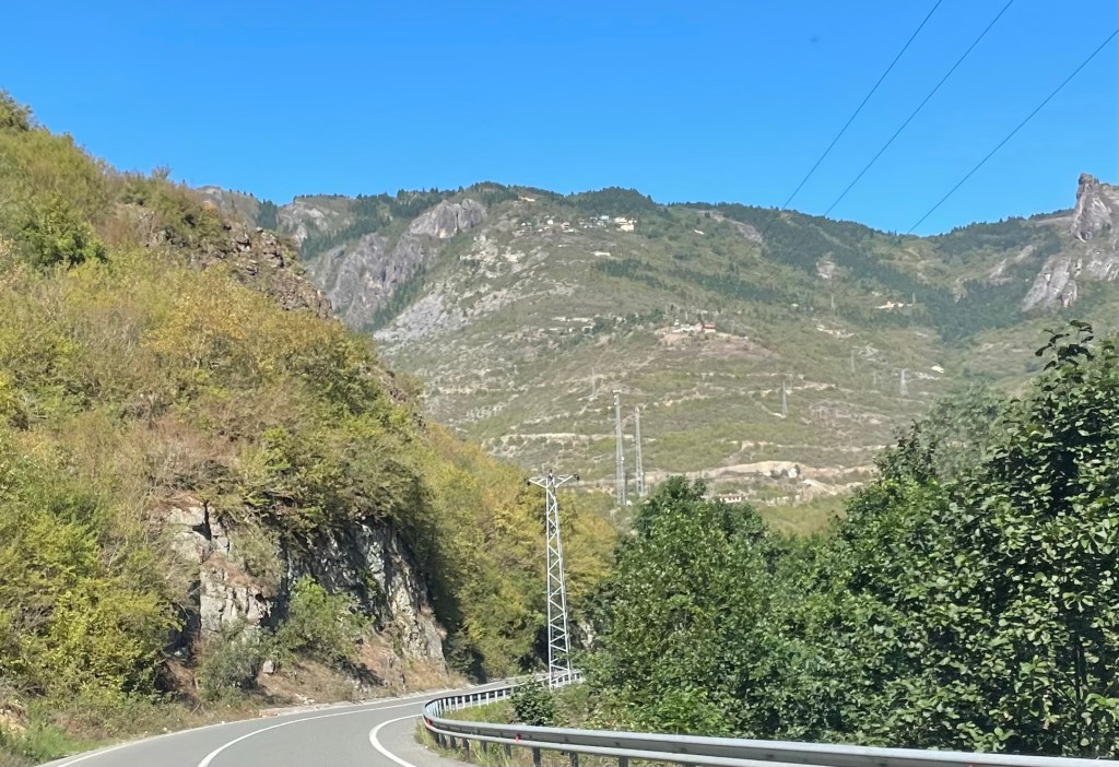 Our park up is sandwiched between trucks, many Georgian, by a picnic area. The best spots have been nabbed by the permanent caravans and other camping cars.