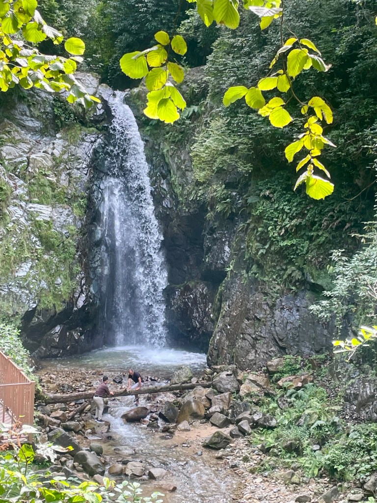 Asked a local with G translate about a road. He replied with perfect English as he used to live in Russel Square, London ££££s! Upshot was we left Jez in the town and walked from there. Uphill to a waterfall. Lunch at the top. Then staggered up a bit more before descending