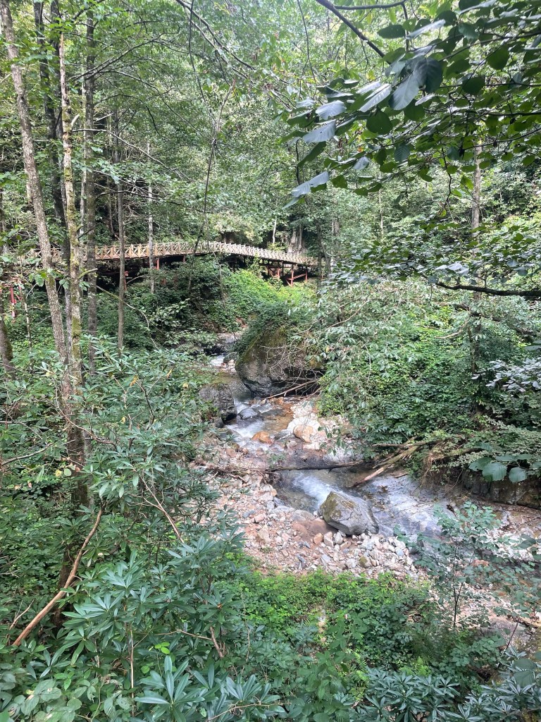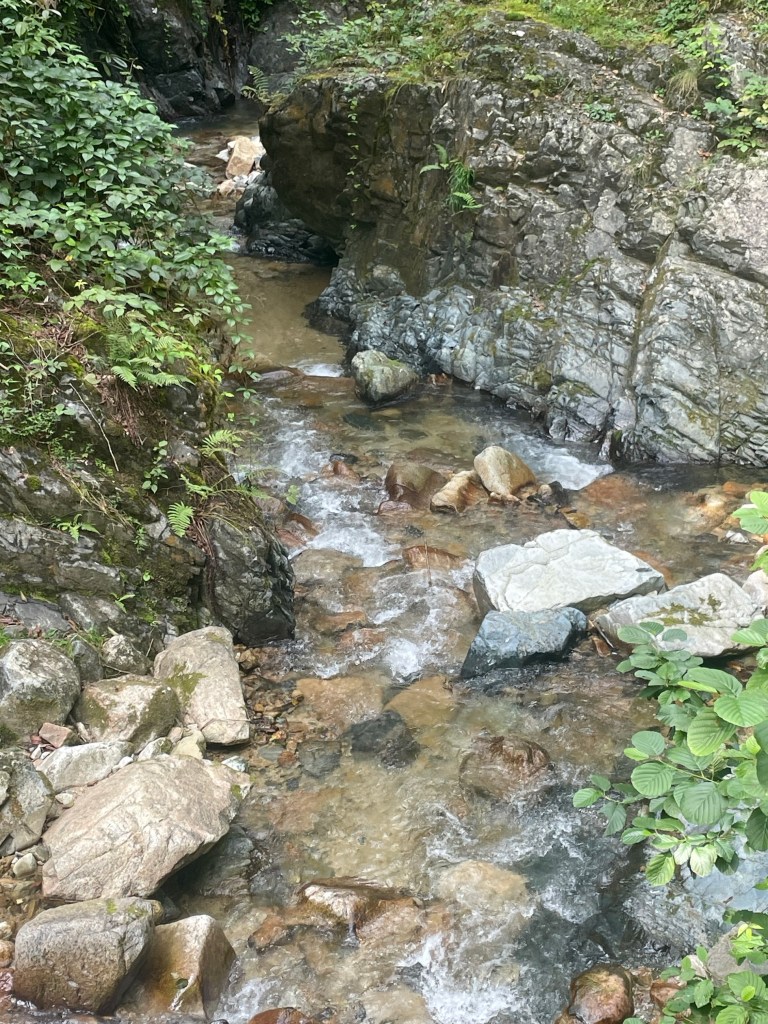 We walked up and up following a river. Then down and down. J’s legs telling him that he exercised yesterday too!