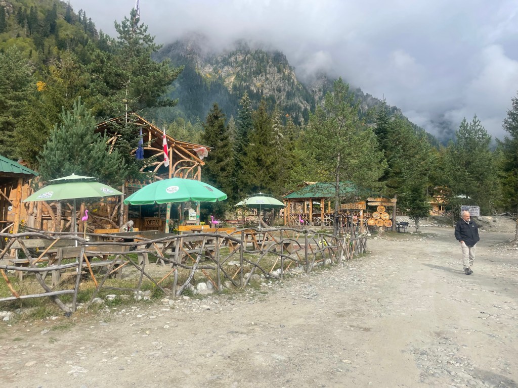We decided against driving the track to the start of the waterfall walk … rain was forecast and I’m still scarred from the road from Hell in Turkey. We went for an ordinary lunch and decided to start the long slow road back south. We picked up French and Australian hitch hikers, with the warning that we would be slow and bumpy. In the event, the descent was much quicker than anticipated and the rain held off. We dropped our passengers in Zugdidi and looked for a parking for us. We didn’t fancy Zugdidi centre, and there weren’t many options on P4N, so we pressed onto our lovely riverside spot in Kutaisi. 5.5 hours driving. So another non dry day!!!