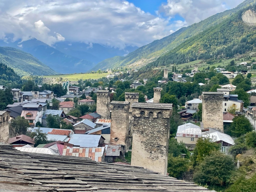 Brr 6C outside when we woke. Lots of layers. Jez only warmed up on the 40 minute drive to Mestia, the capital of the Svaneti region.