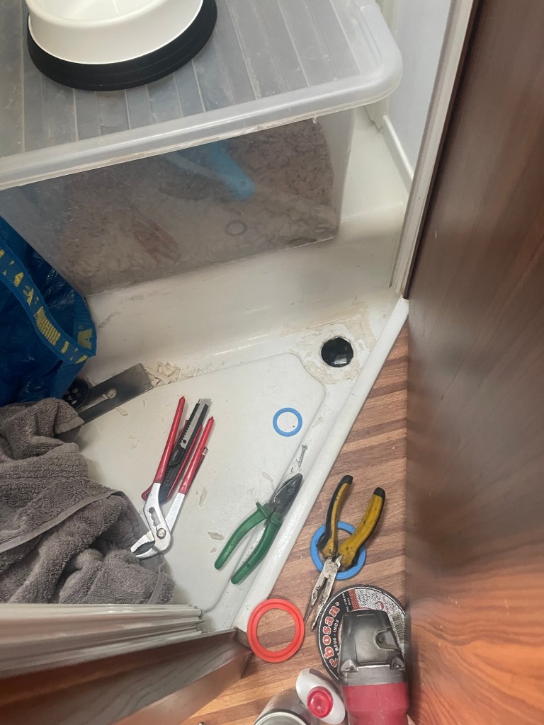 Only 233km today to our lovely repair chaps. We went shopping and for some lunch. Sat inside whilst a man on the roof. Another in the shower. And the little one said Roll Over.